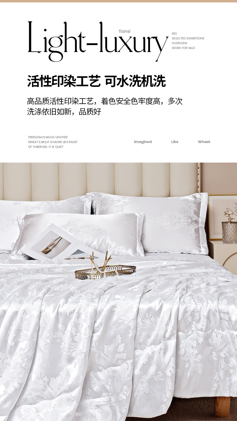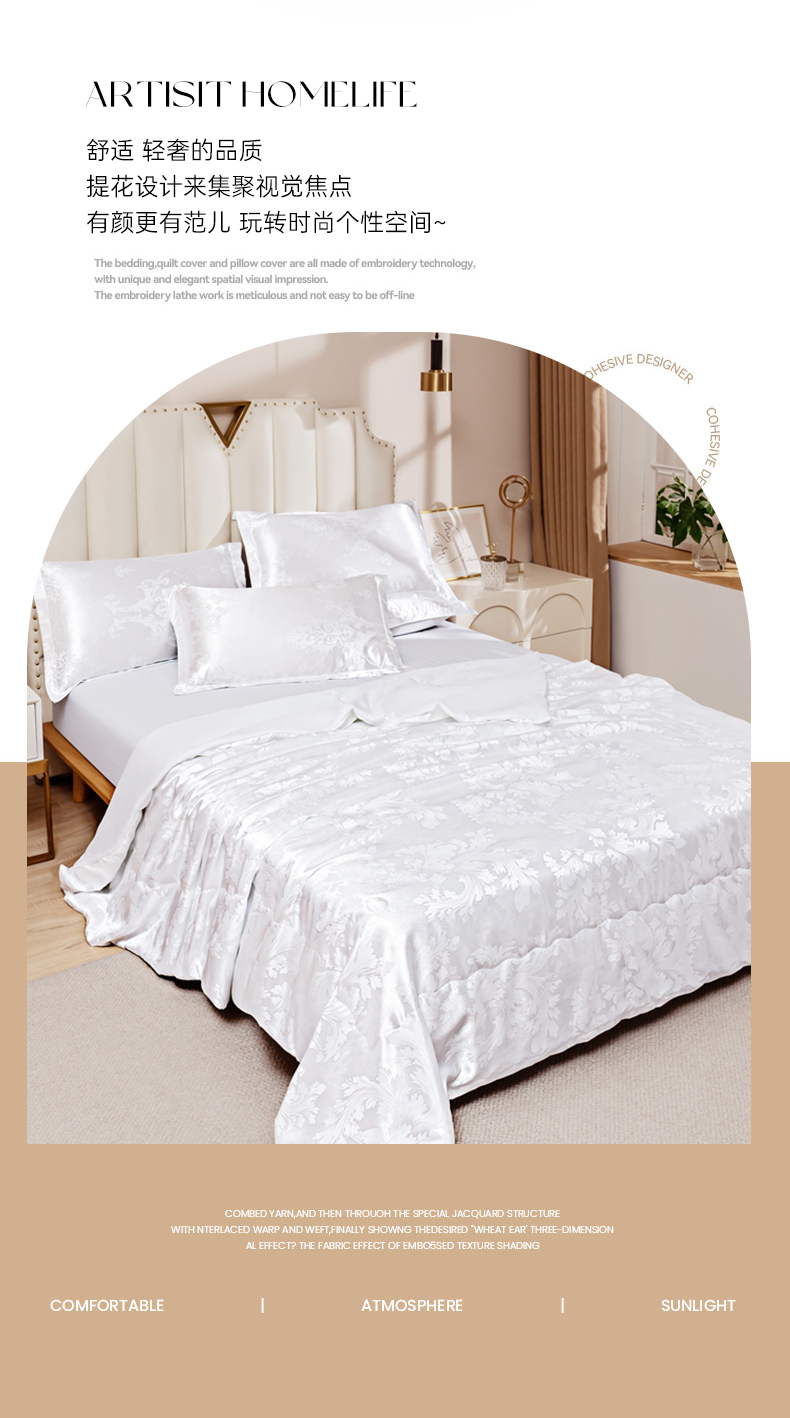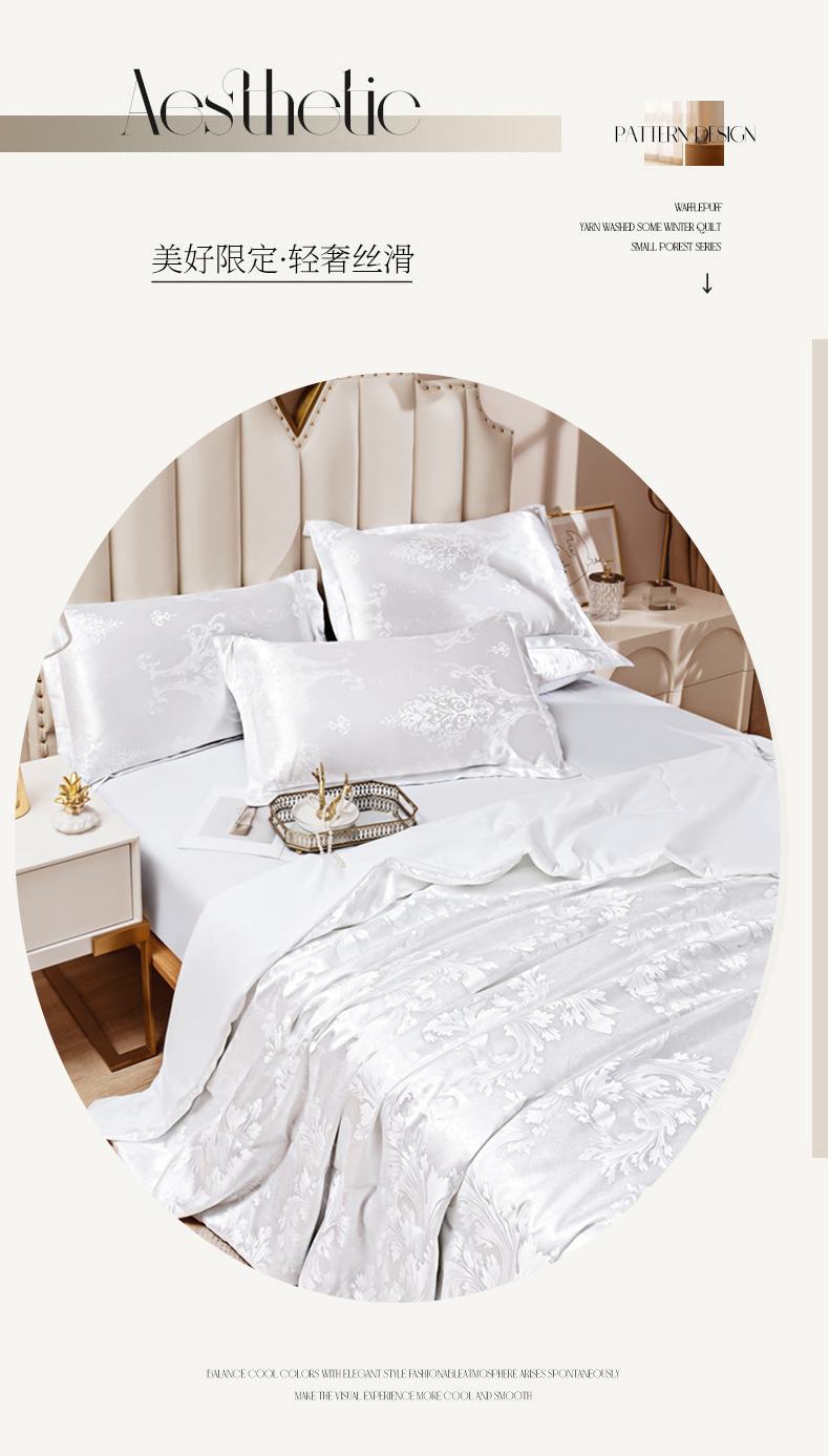 (总)莱欧纳家纺 2025新款提花夏被四件套,豆沙,灰色,香槟,紫色