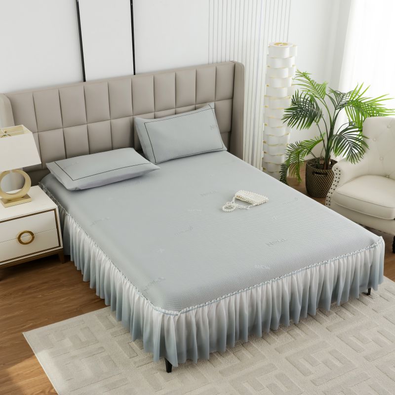 新月家纺(锦威郎) 2025新款凉豆豆亲肤英文床裙 灰色