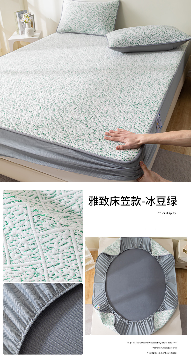 商品名称:鑫姿席业 2025新款A类凉感冰豆豆席 雅致床笠款-冰豆绿
