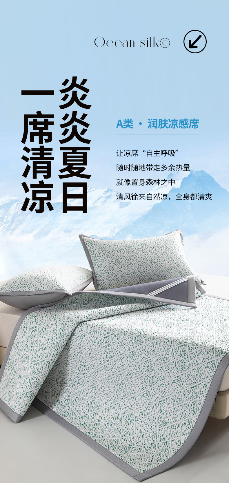 鑫姿席业 2025新款A类凉感冰豆豆席 雅致床笠款-冰豆绿