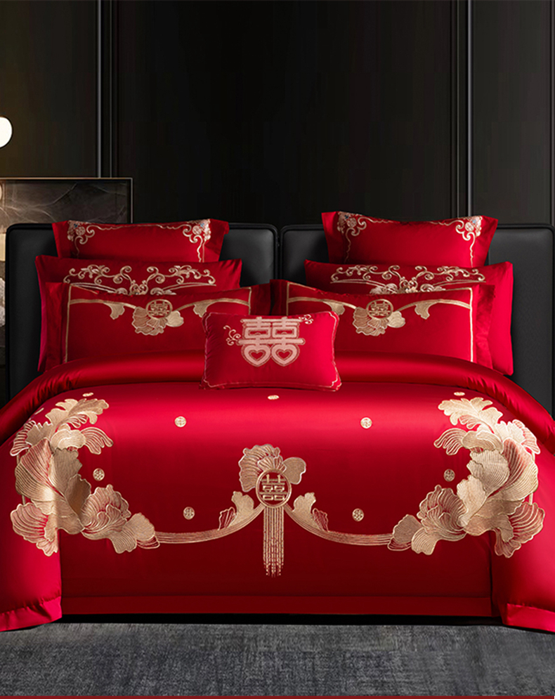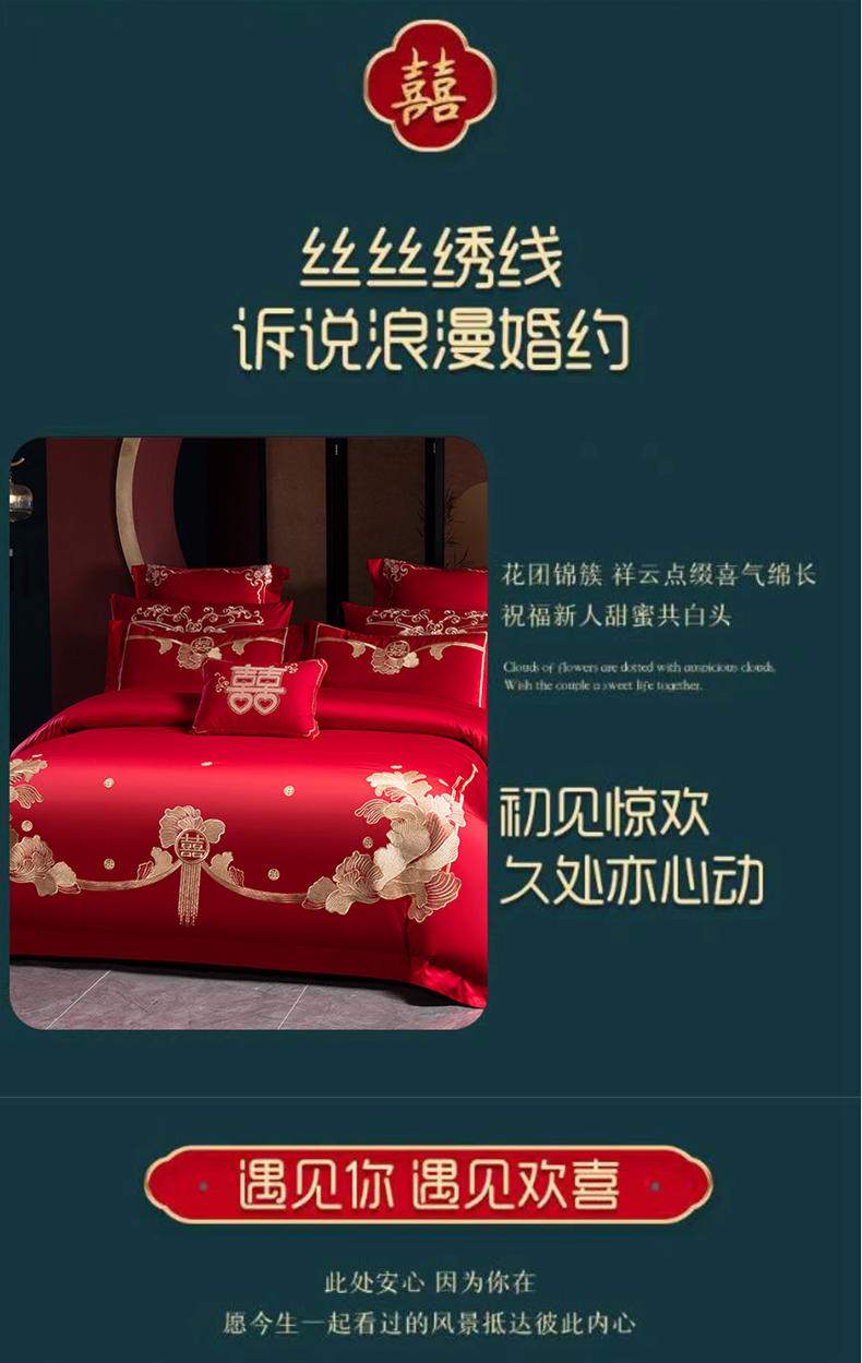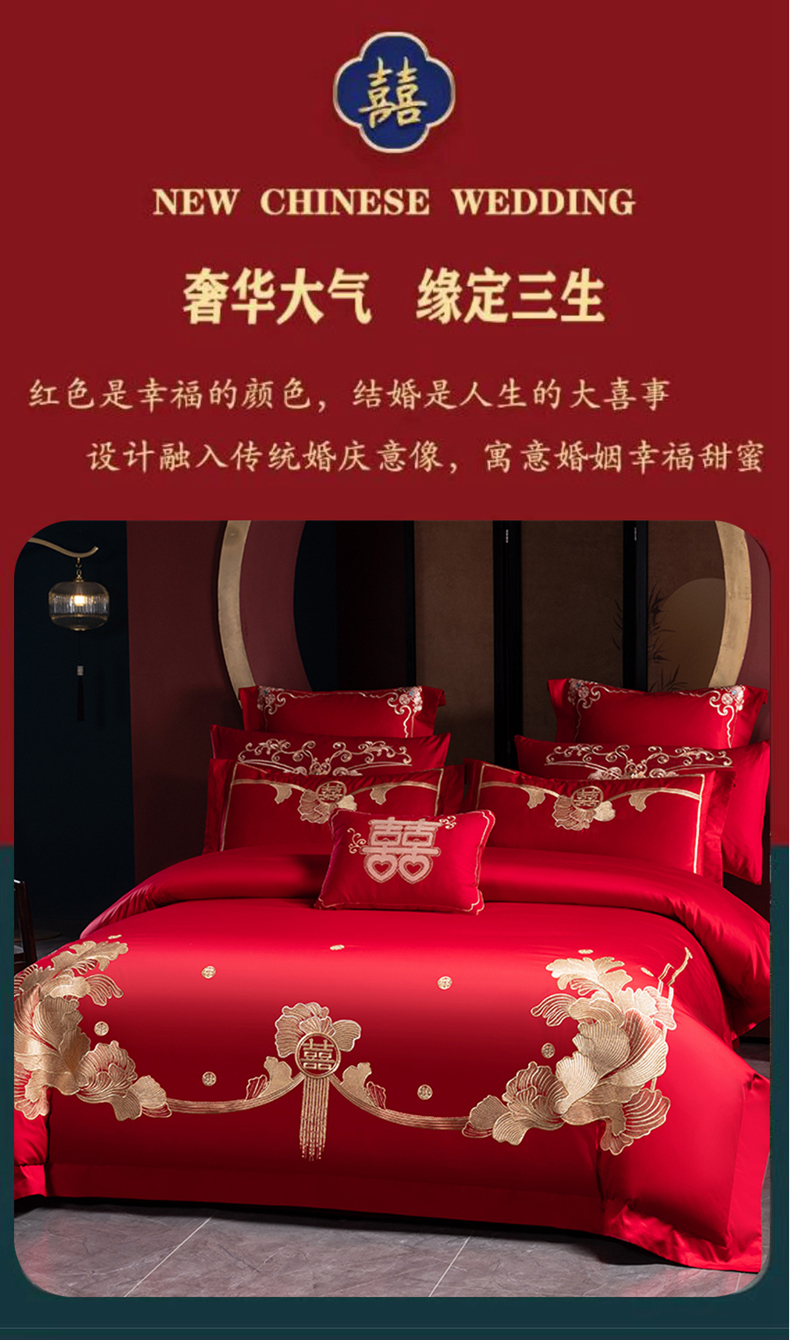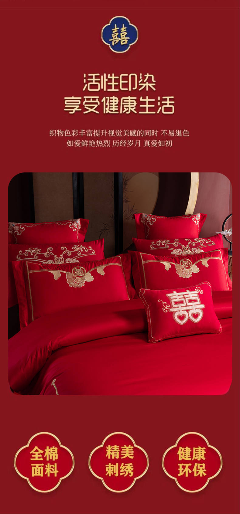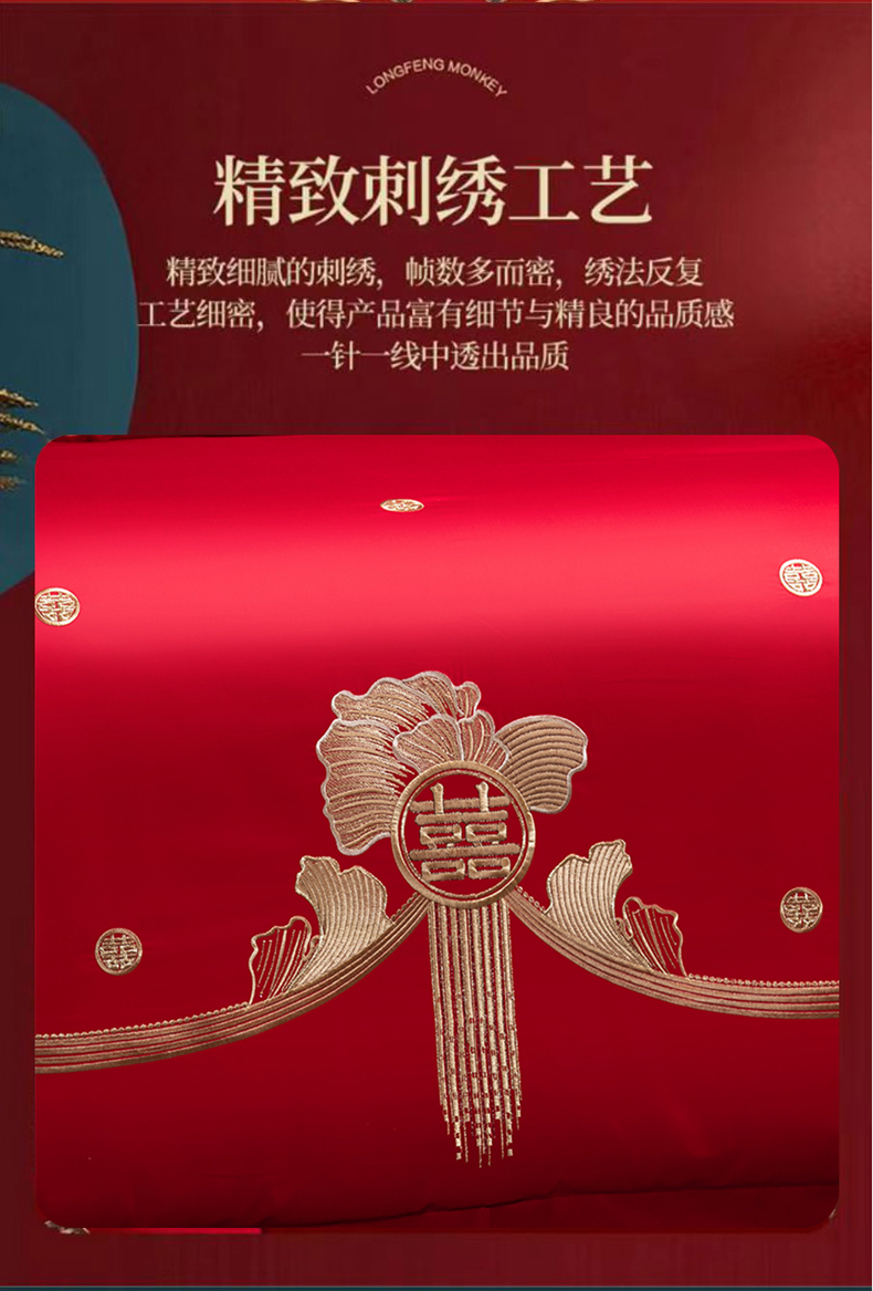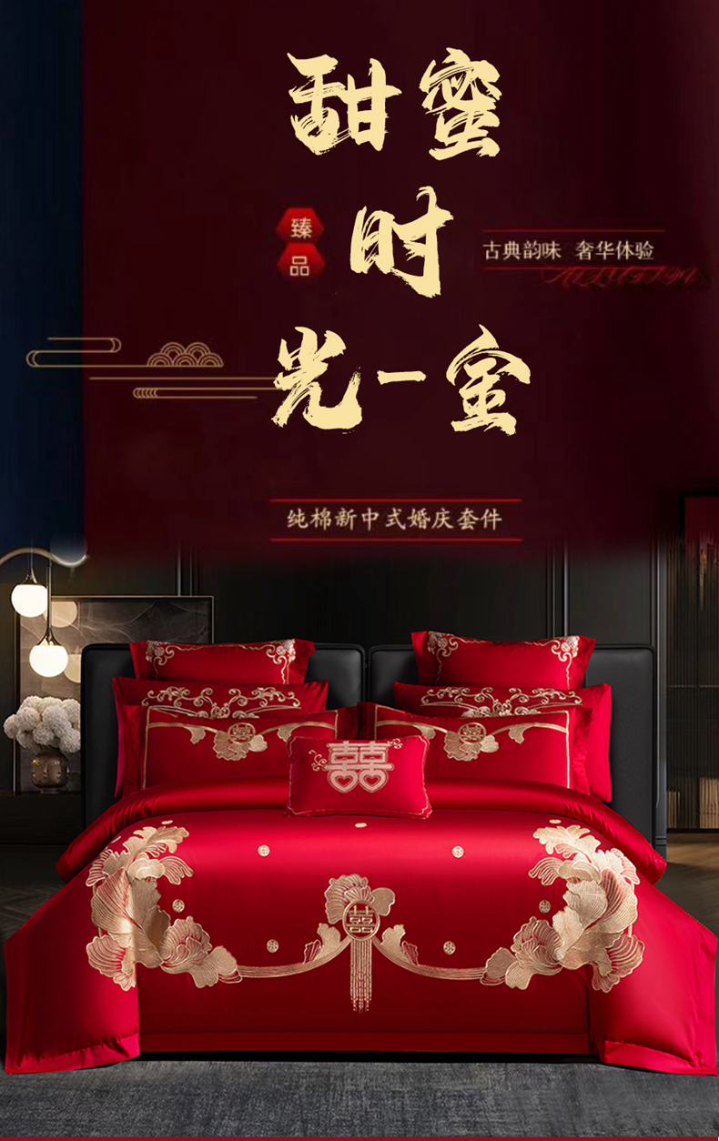 当前位置: 91家纺网 > 商品网购 > 床品套件 > 多件套 > 多件套 > 博之洋婚庆 2025新款全棉长绒棉刺绣新中式婚庆系列多件套 甜蜜时光-金