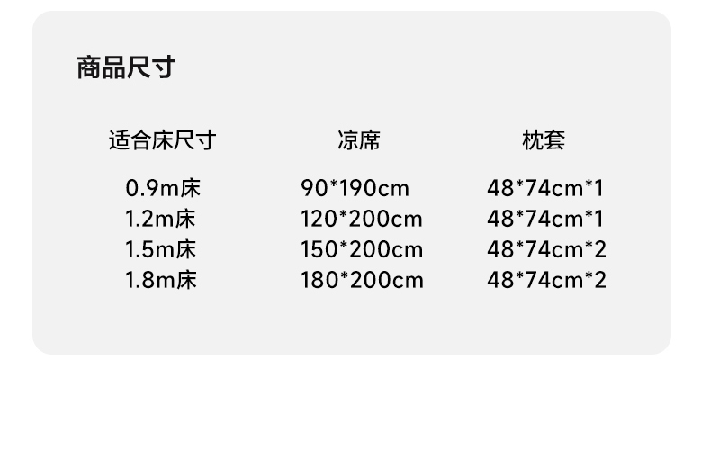 1.8m床凉席1.8*2.0*2,枕套48*74*2 | ¥70.00 |
