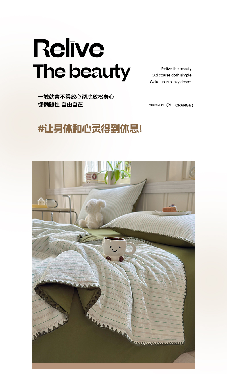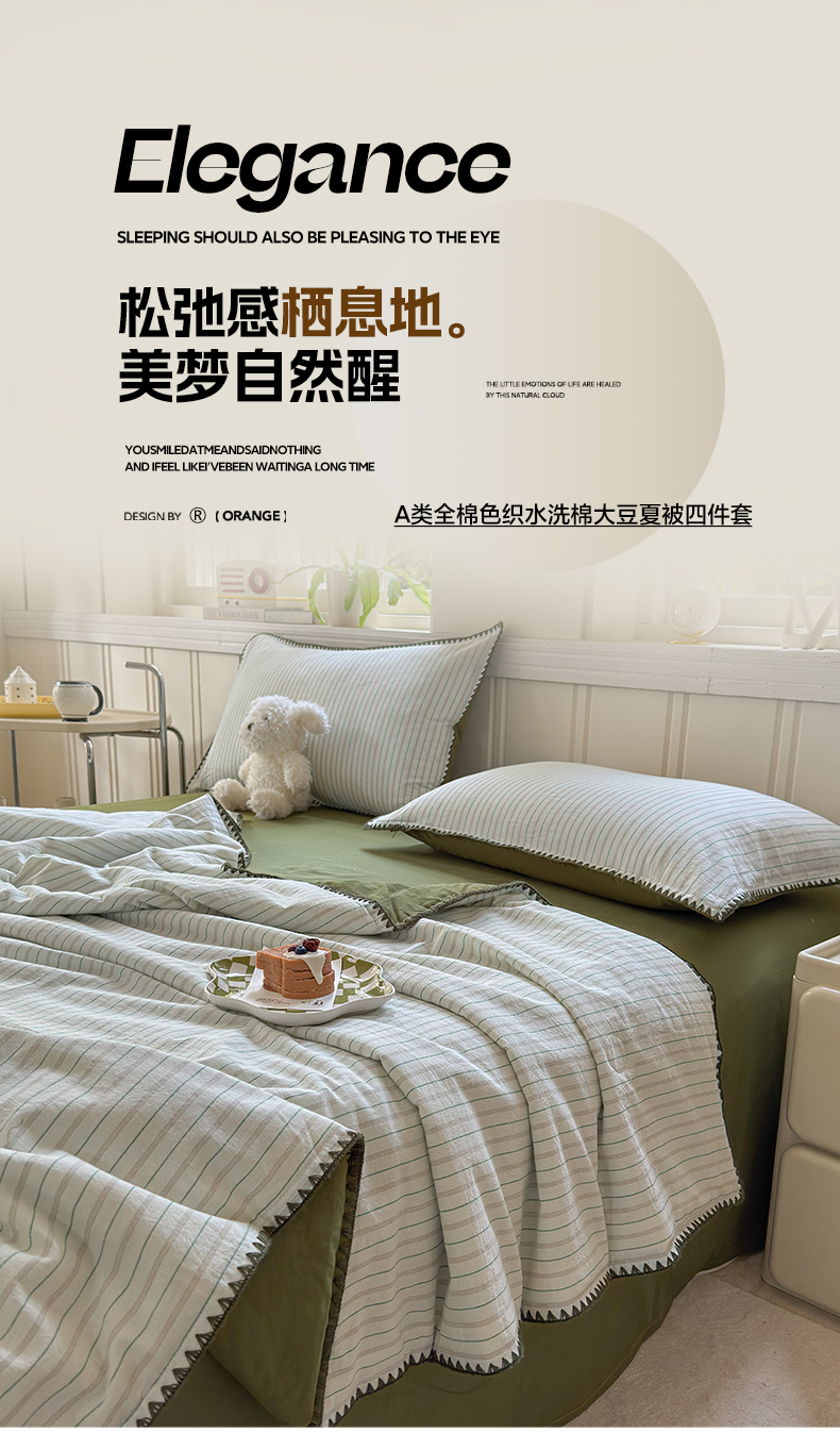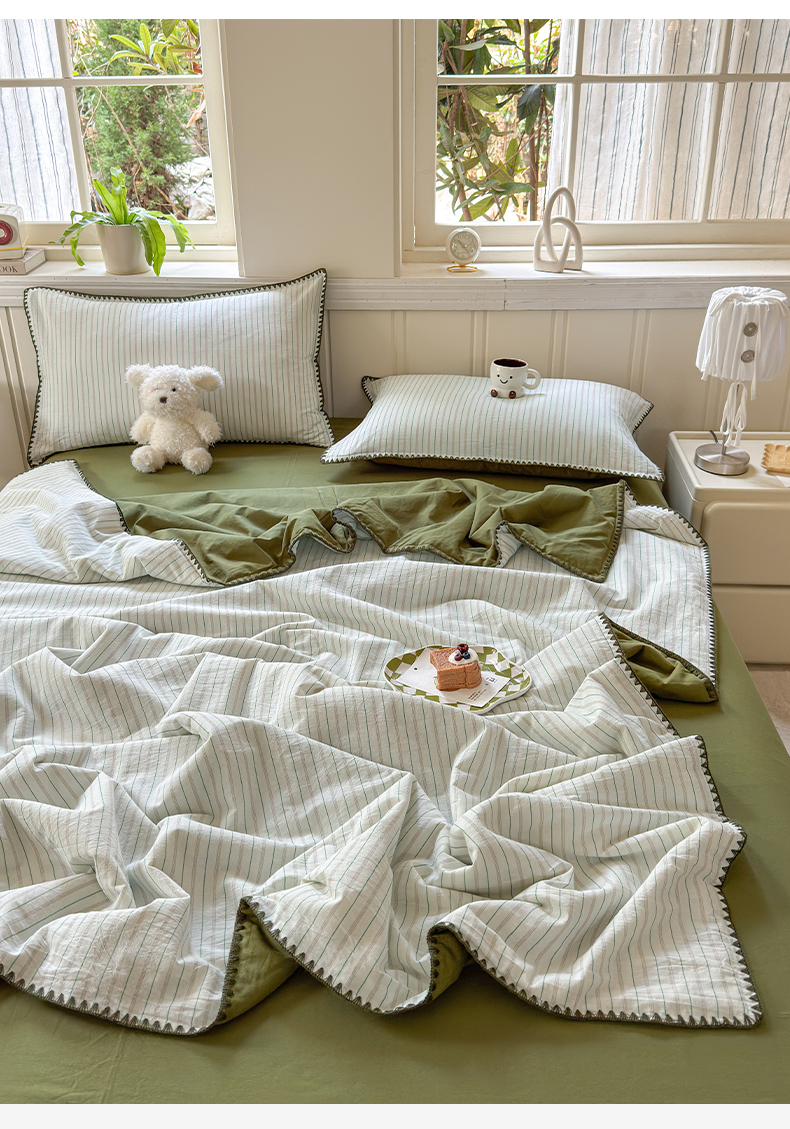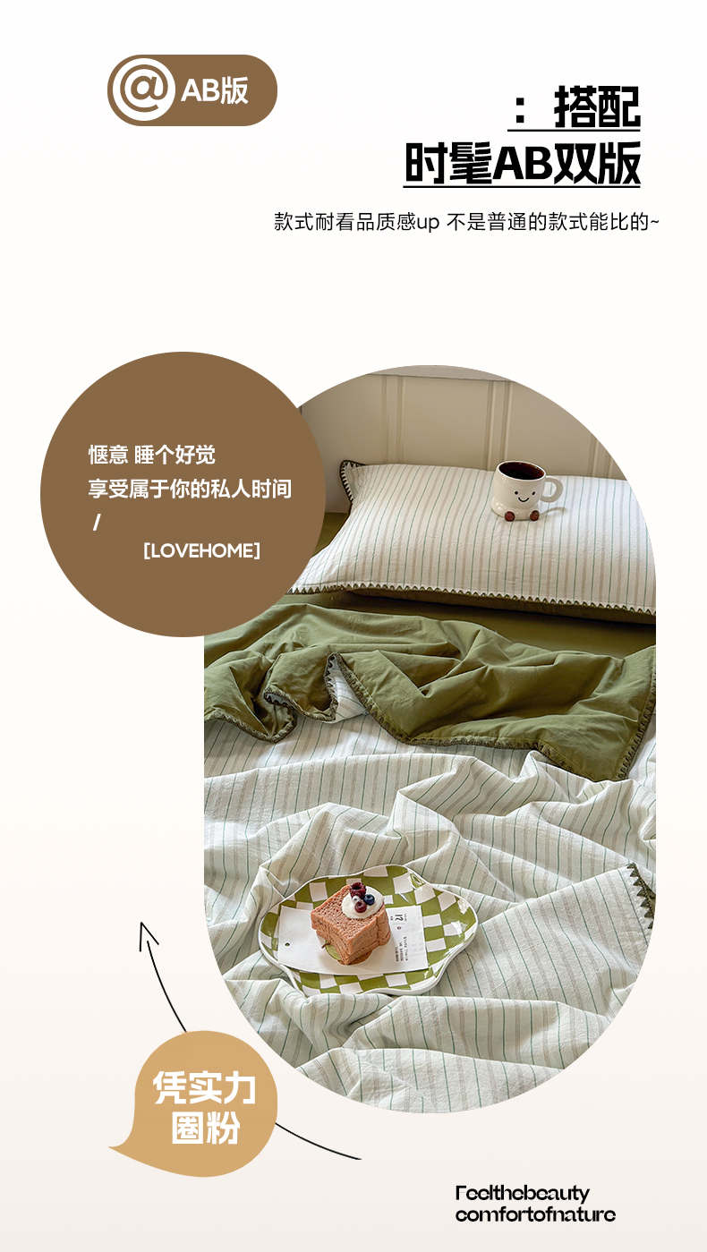 当前位置: 91家纺网 > 商品网购 > 床品套件 > 四件套 > 夏被四件套 > 莱登卡奴 2025新款A类全棉色织水洗棉大豆夏被四件套系列 色织夏被-柒夏绿