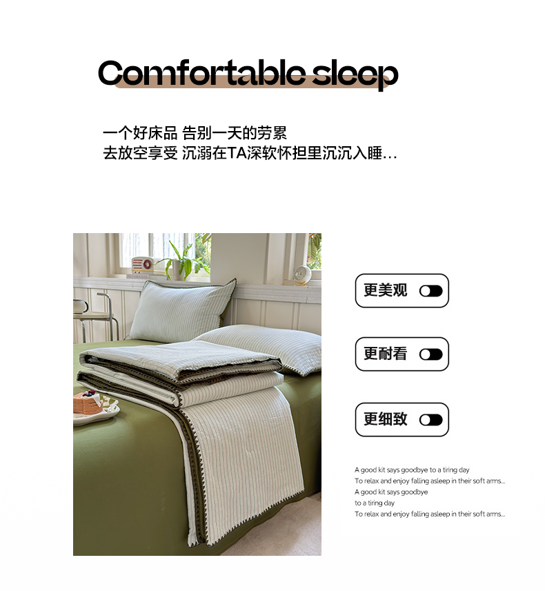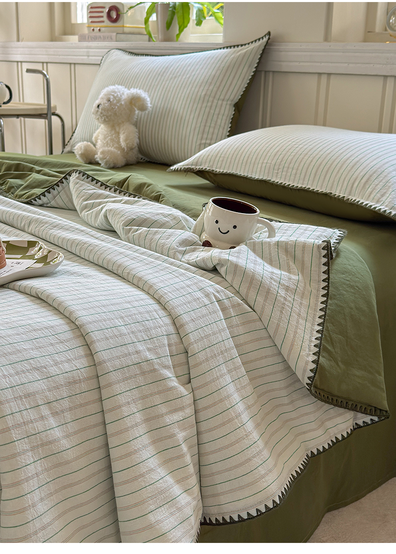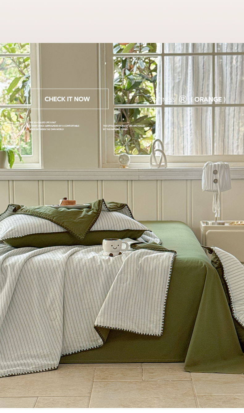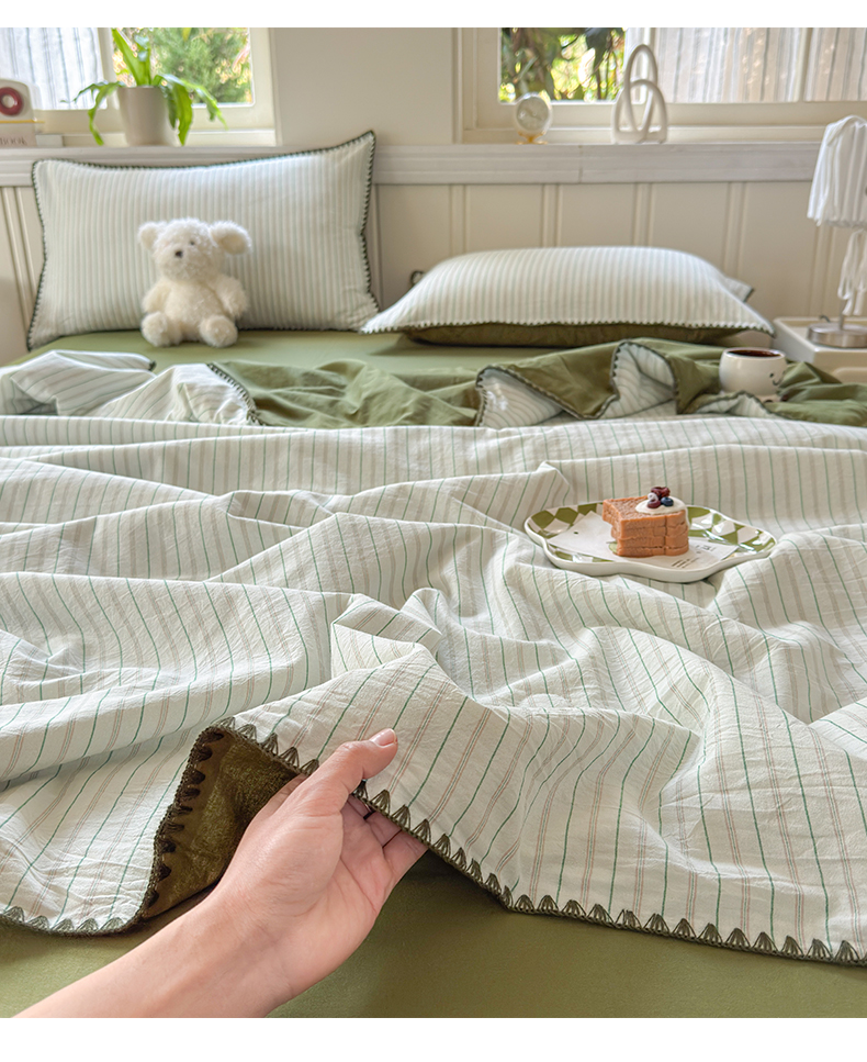 当前位置: 91家纺网 > 商品网购 > 床品套件 > 四件套 > 夏被四件套 > 莱登卡奴 2025新款A类全棉色织水洗棉大豆夏被四件套系列 色织夏被-柒夏绿