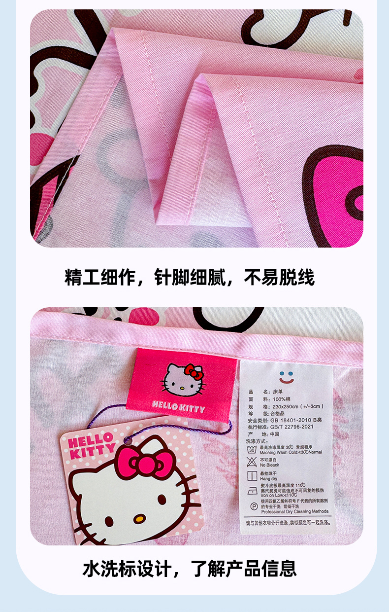 • 91家纺网 家纺一手货源 找家纺 呗旺鹿 2025新款正版三丽鸥全棉13372单品床单 开心凯蒂