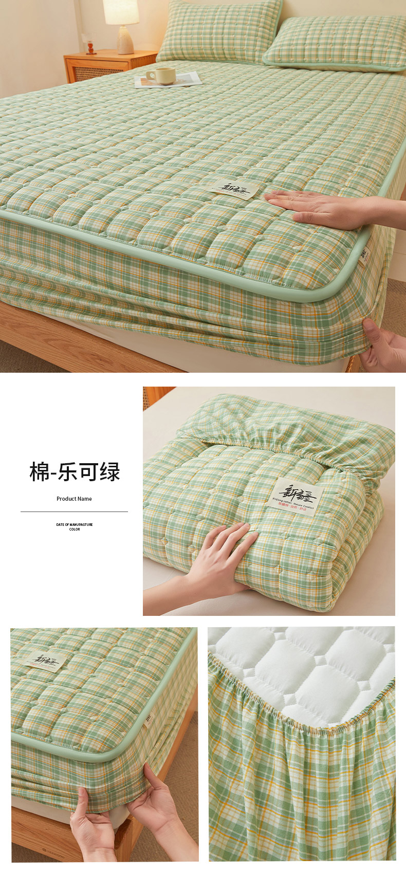 喜居家纺2025新款A类水洗棉夹棉棉花床笠垫 棉-乐可绿