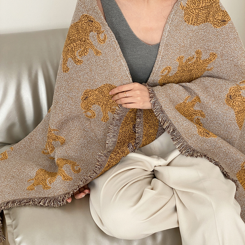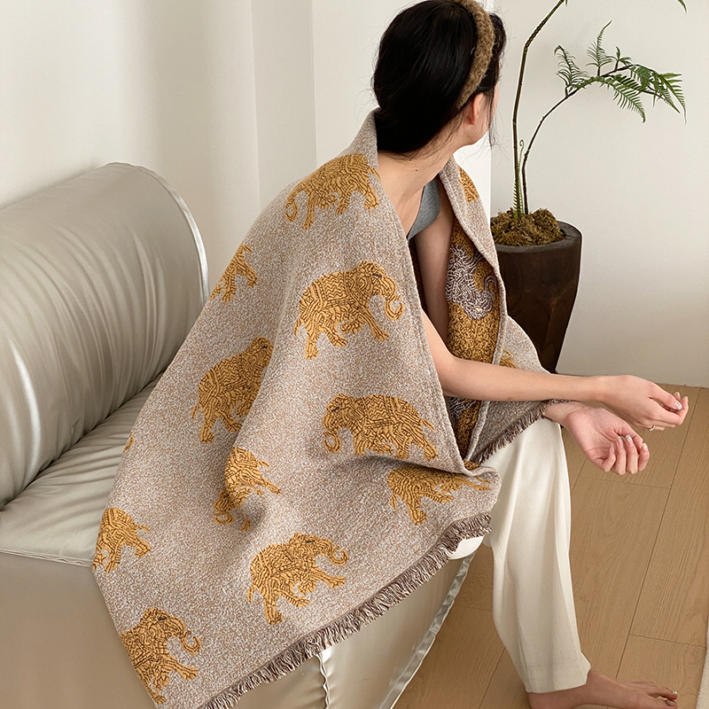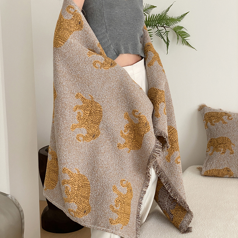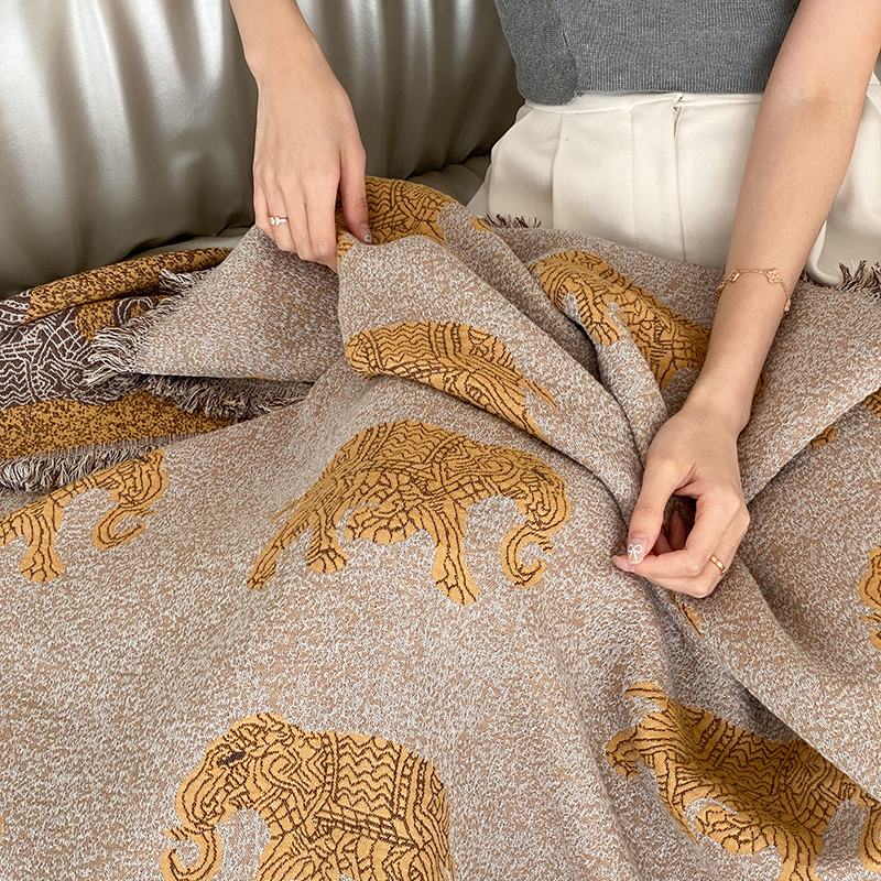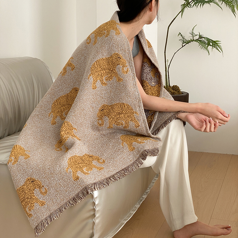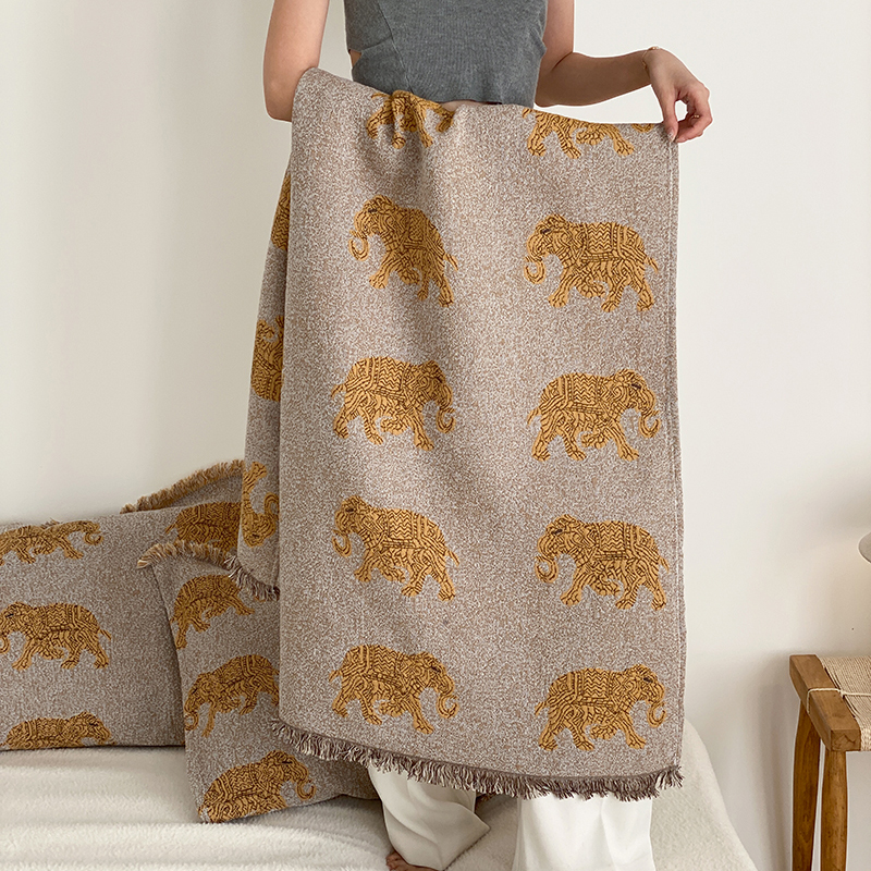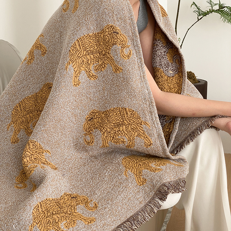 商品名称:麻依 2025新款全棉四层纱布流苏毯旅行披肩休闲毛巾被 绵绵向上