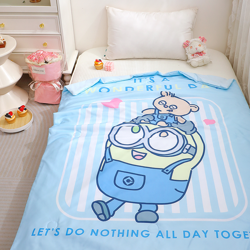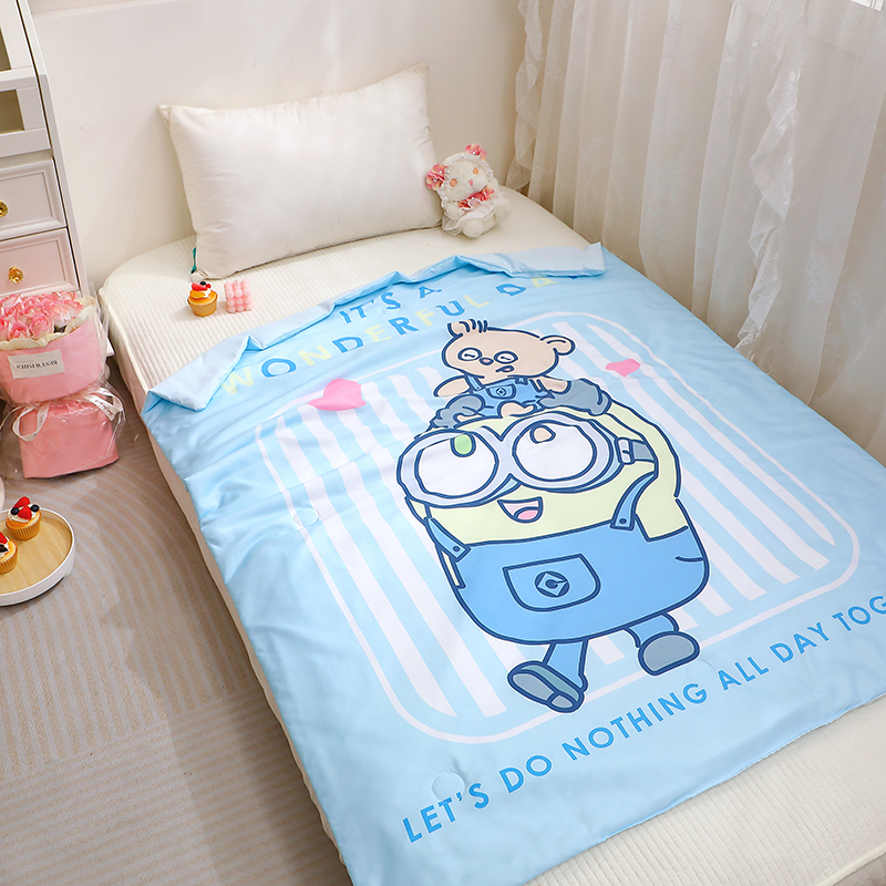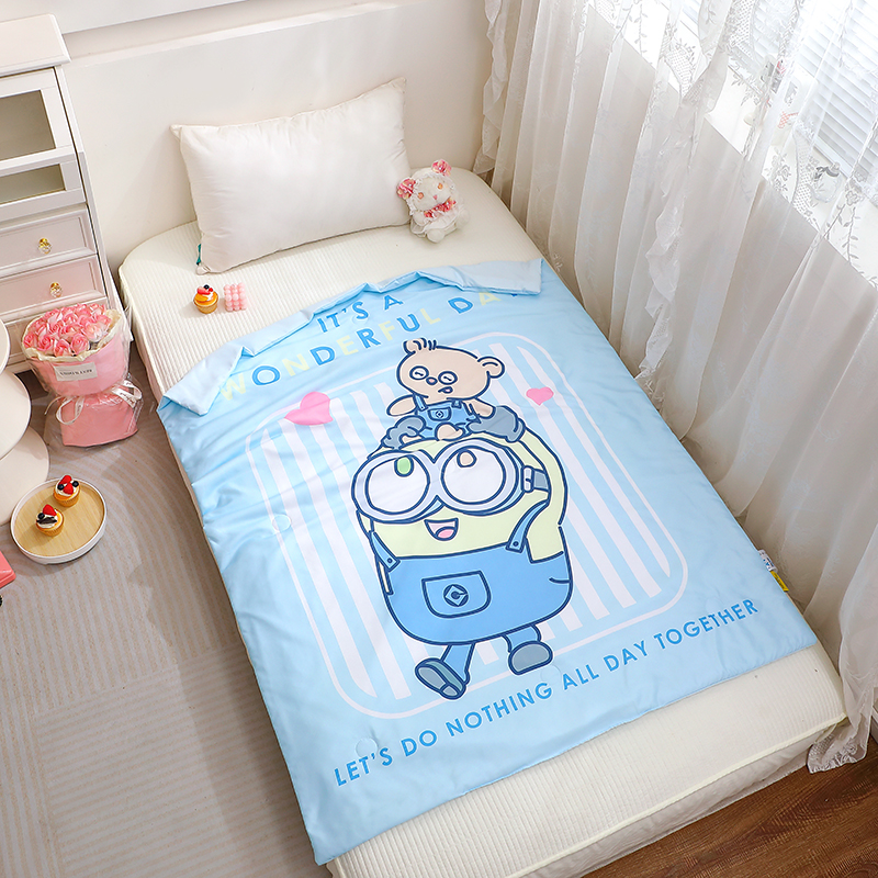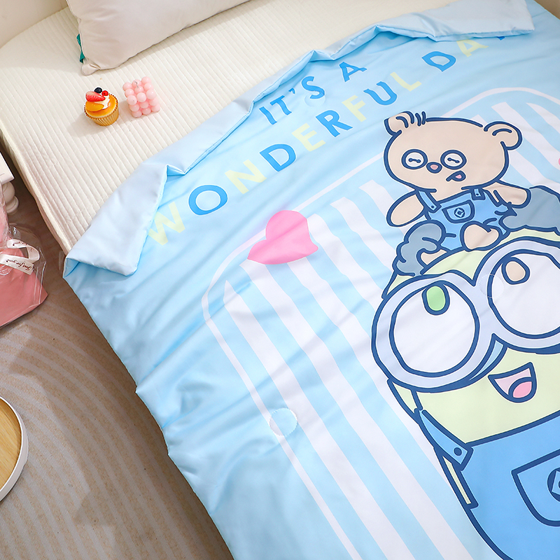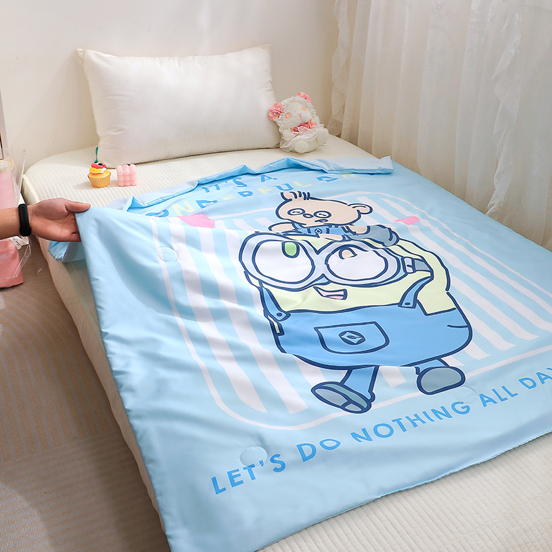 2025新款三丽鸥正版授权库洛米儿童大版夏被夏凉被凉感天丝空调被夏凉被幼儿园午睡凉席夏被三件套 小黄人-BOB蓝