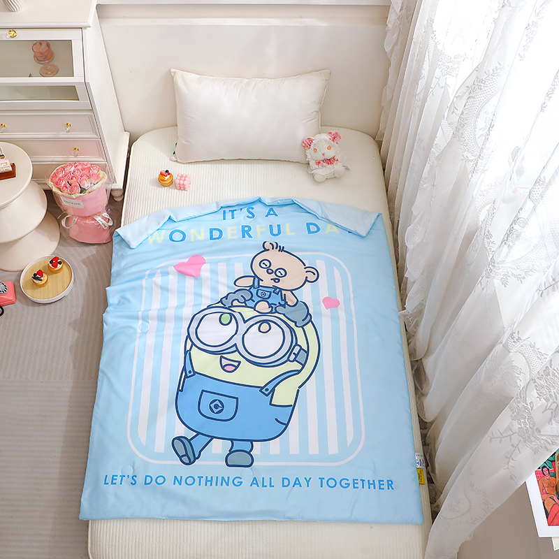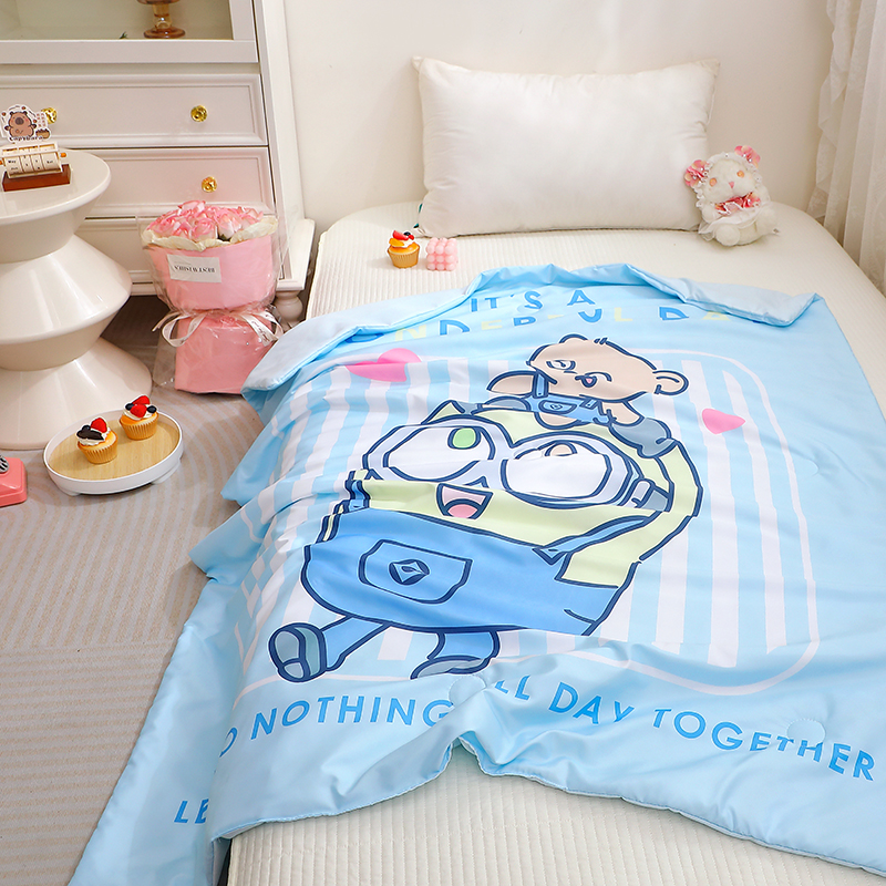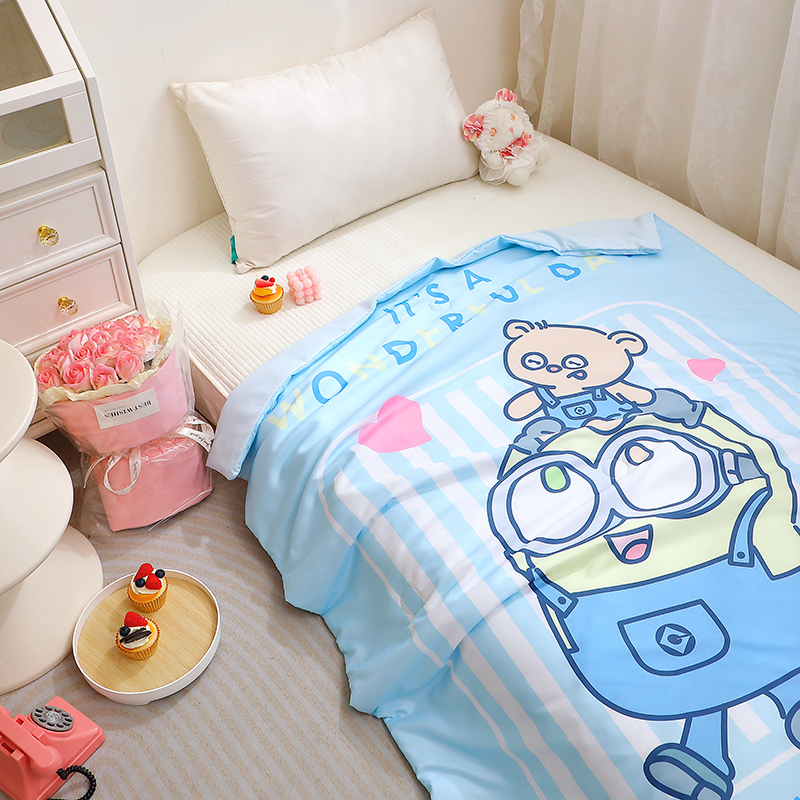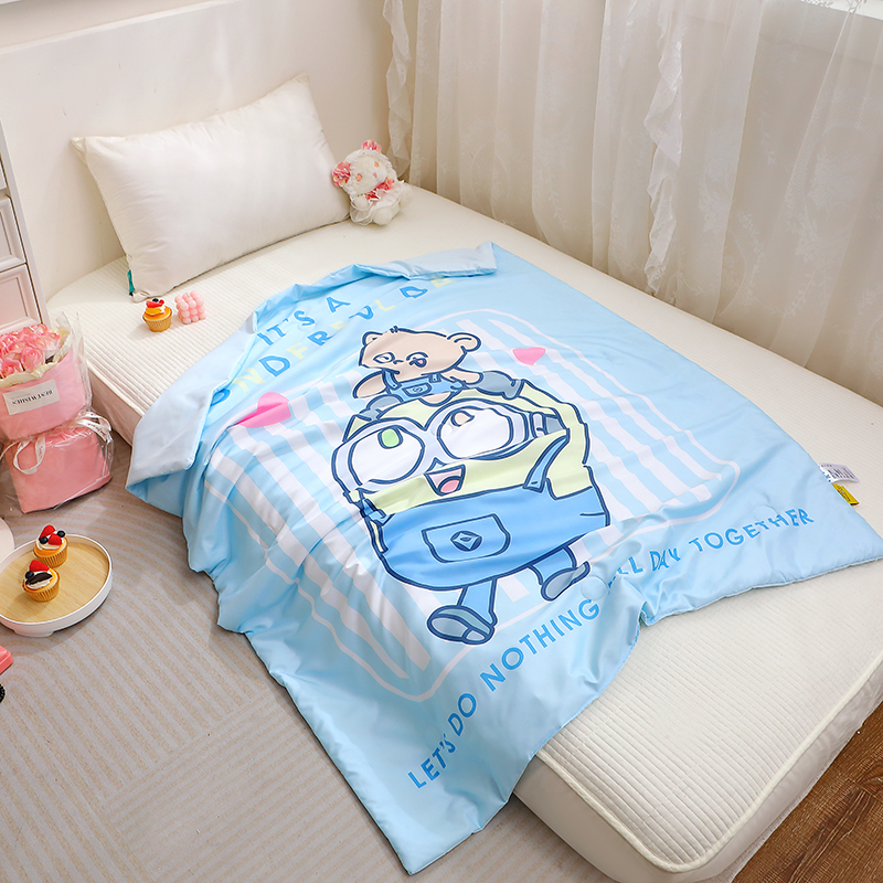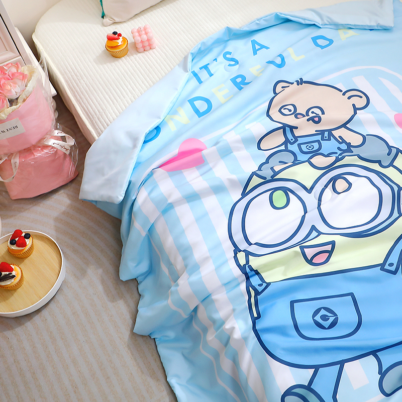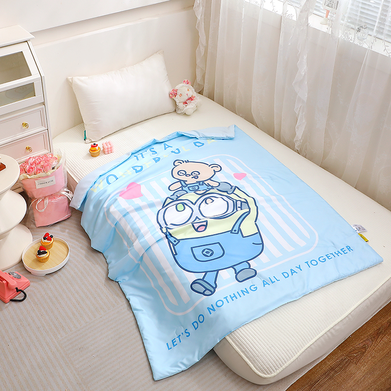 2025新款三丽鸥正版授权库洛米儿童大版夏被夏凉被凉感天丝空调被夏凉被幼儿园午睡凉席夏被三件套 小黄人-BOB蓝