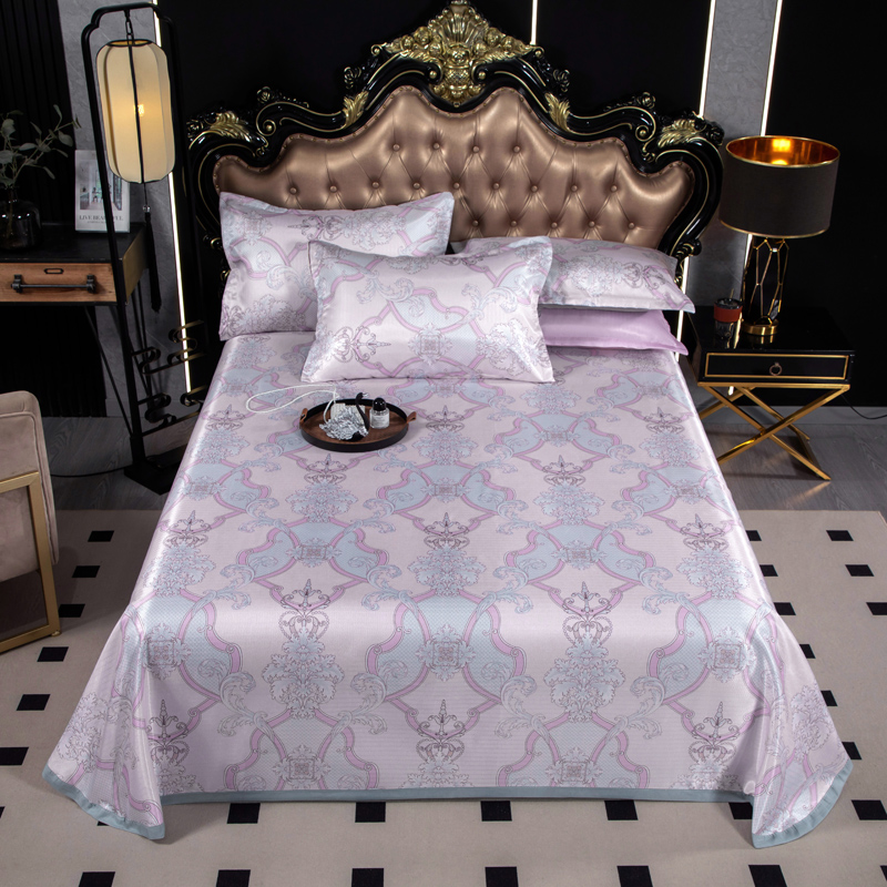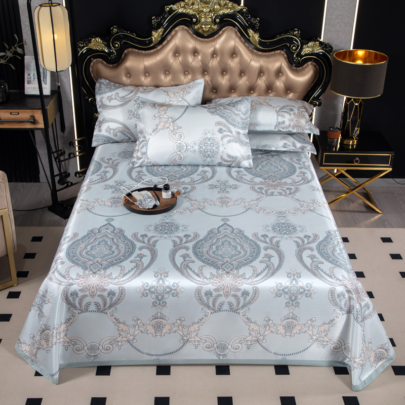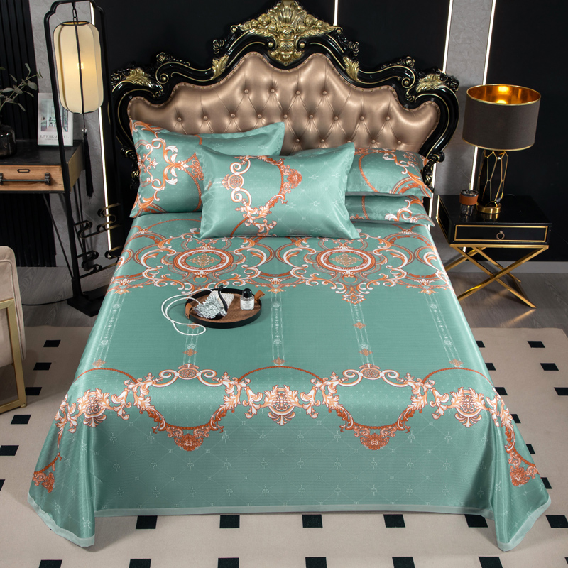 悦织湾家纺 2025新款印花斜纹冰丝席三件套 贵族风范绿