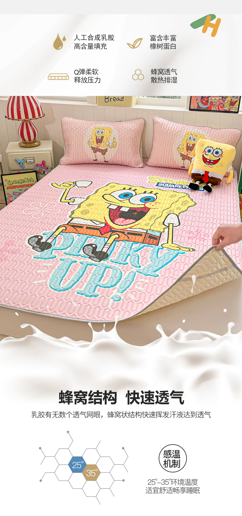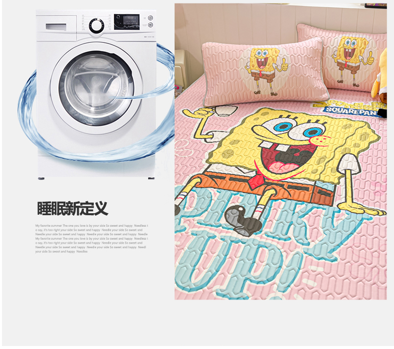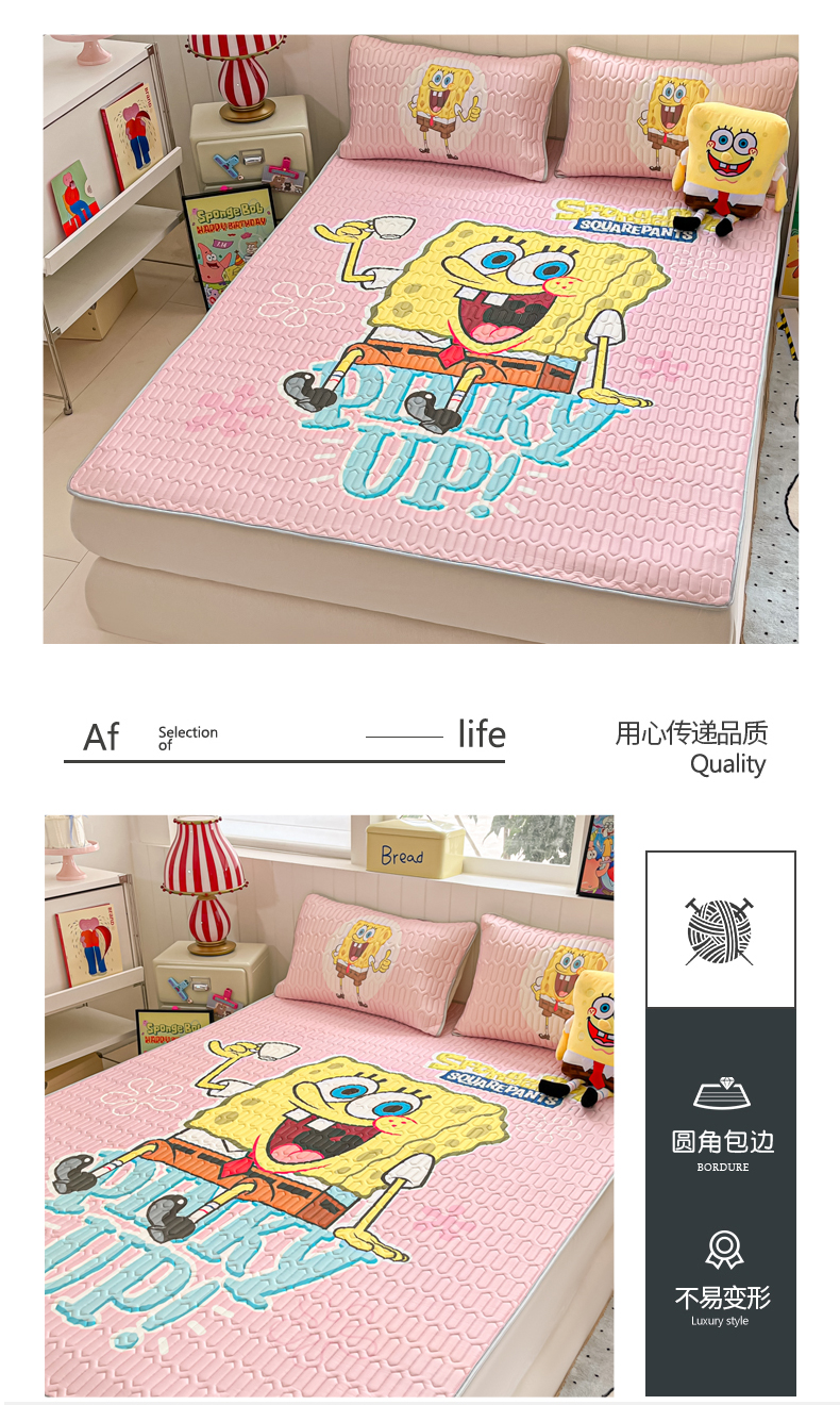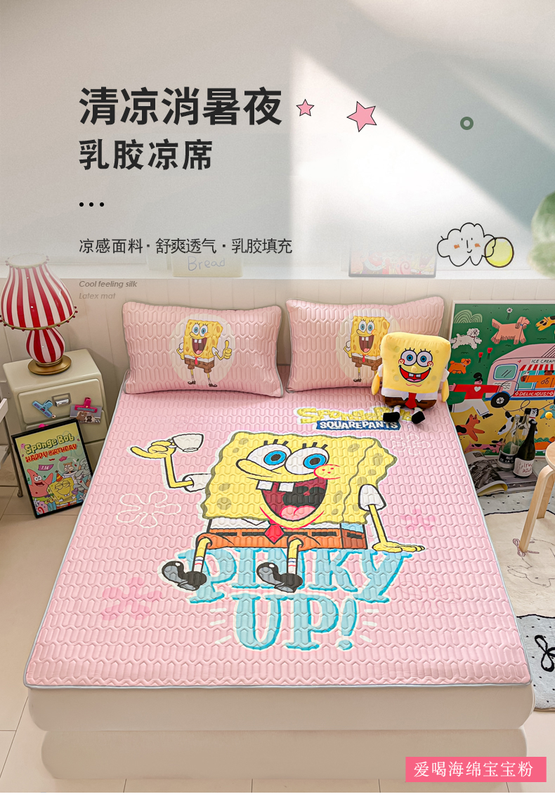 当前位置: 91家纺网 > 商品网购 > 床品套件 > 三件套 > 金爱家 2025新款海绵宝宝乳胶凉席床席款凉席席子 床席款-爱喝海绵宝宝粉