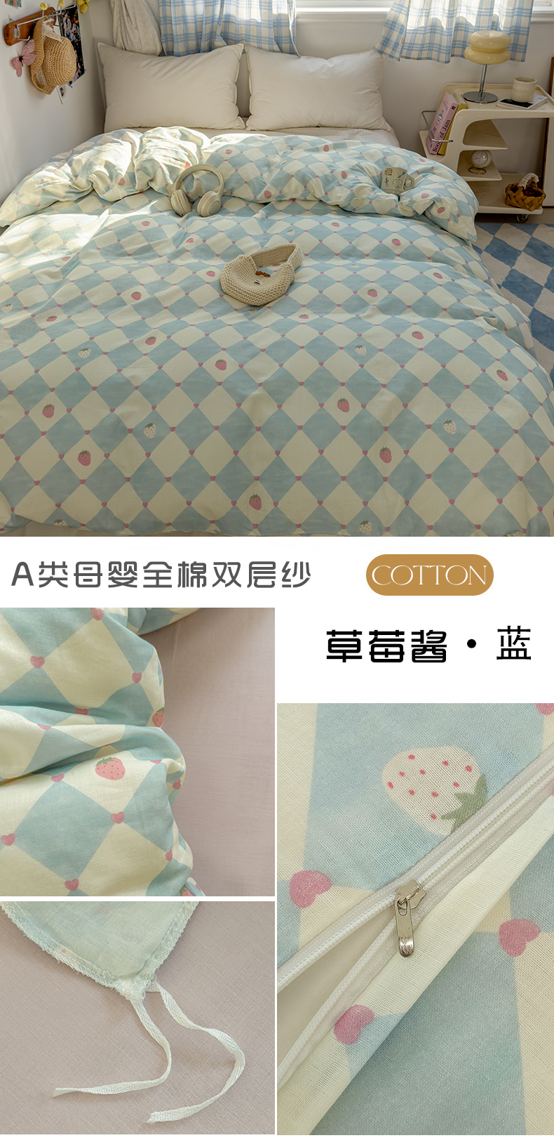 • 91家纺网 家纺一手货源 找家纺 塔塔家居  2025新款全棉纯棉双层纱被套单品单被套被套单件 草莓酱·蓝