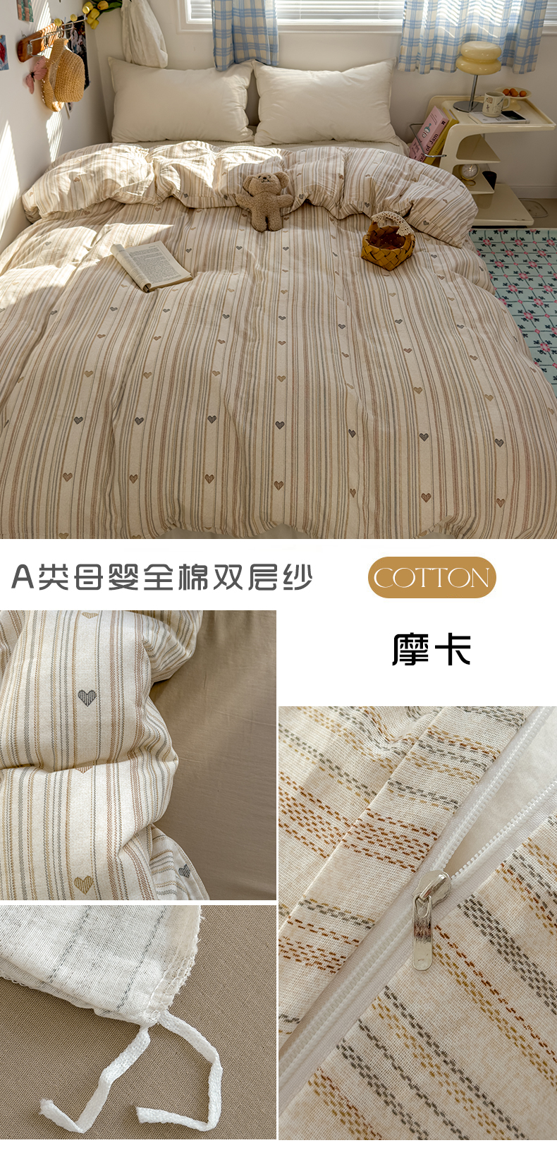 • 91家纺网 家纺一手货源 找家纺 塔塔家居  2025新款全棉纯棉双层纱被套单品单被套被套单件 摩卡