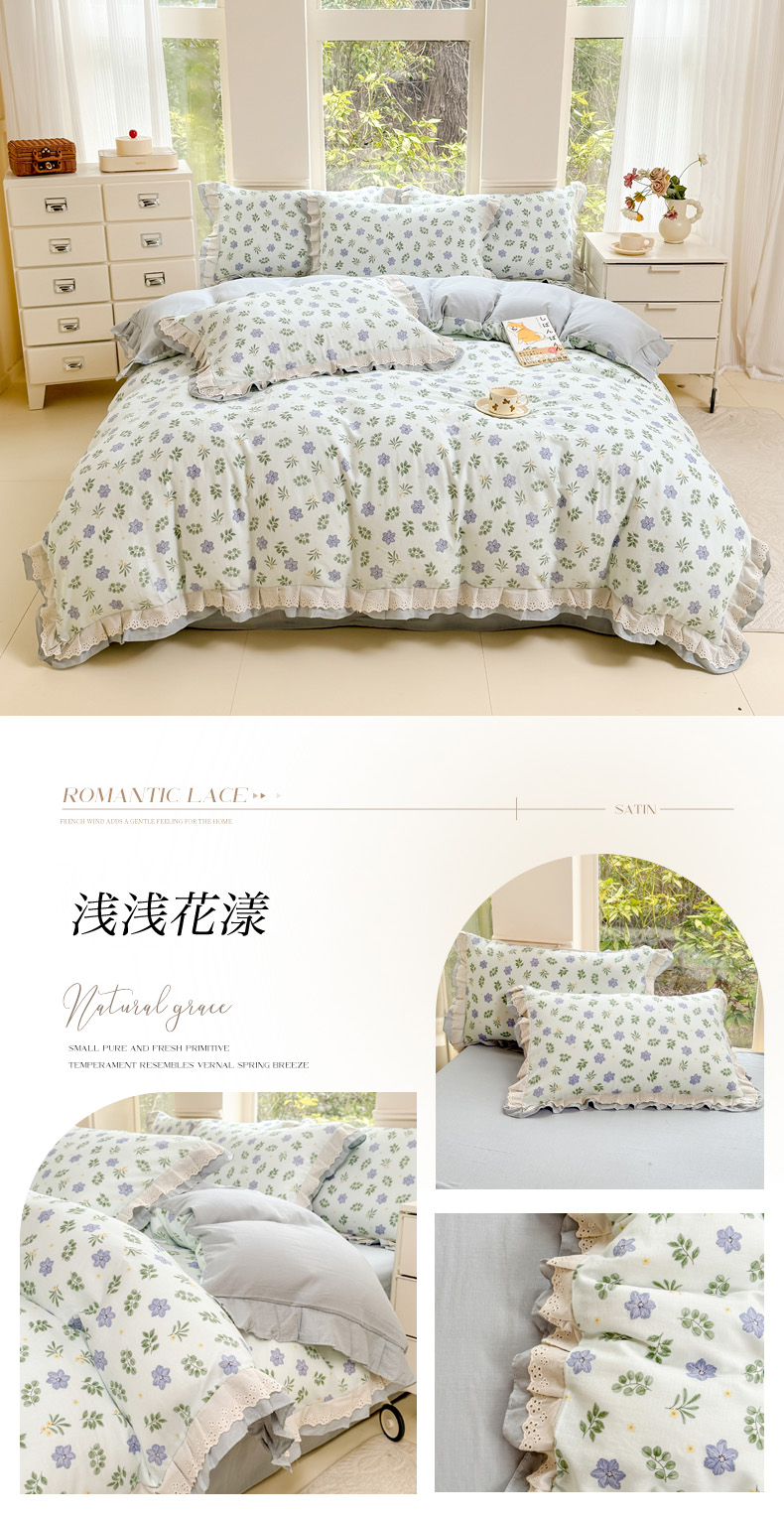 晨晨家纺2025新款全棉双层花边双层纱四件套 浅浅花漾