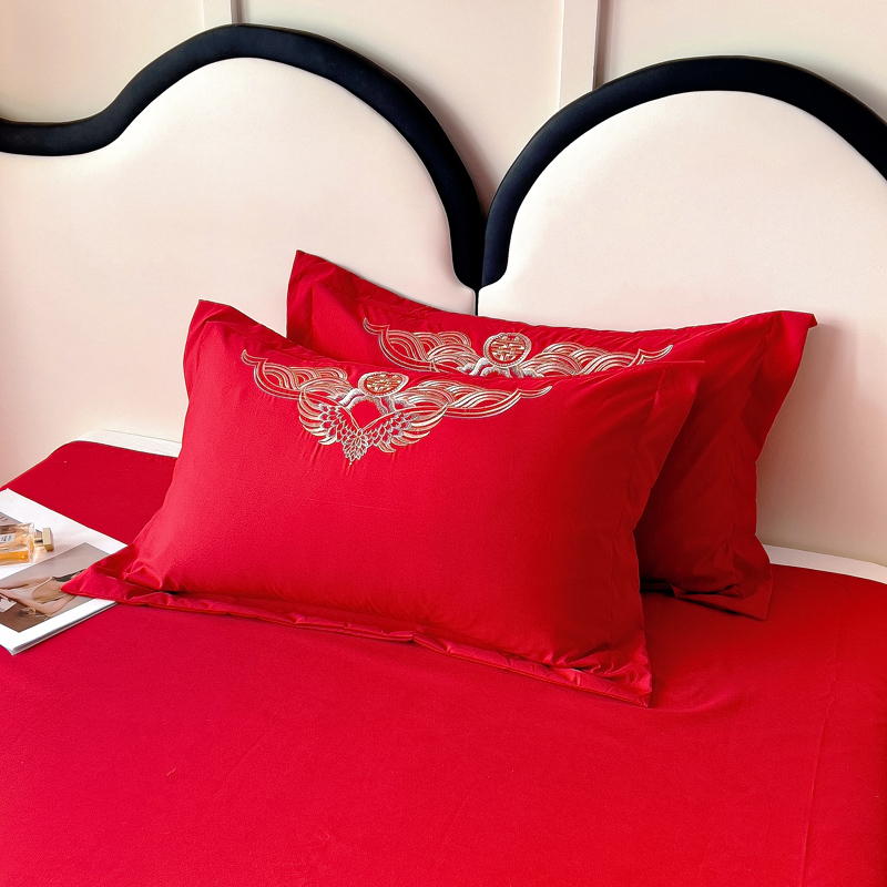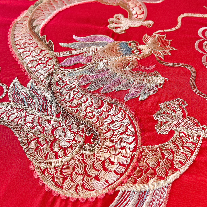 商品名称:2025新款100支150克双面长绒棉婚庆绣花四件套 龙腾凤跃