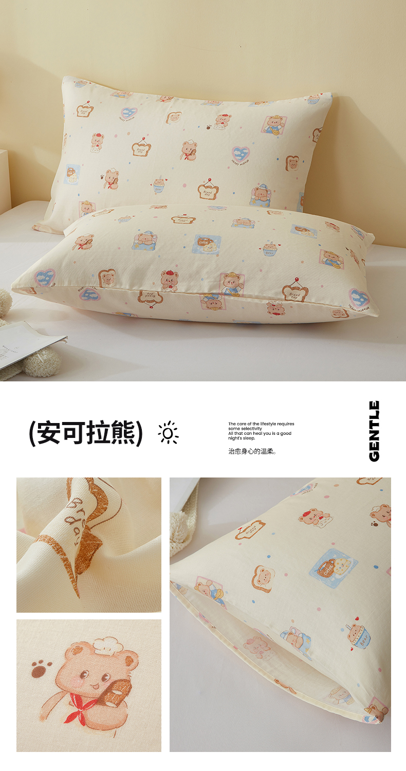 • 91家纺网 家纺一手货源 找家纺 2025款A类母婴级全棉双层纱枕套_4032 安可拉熊