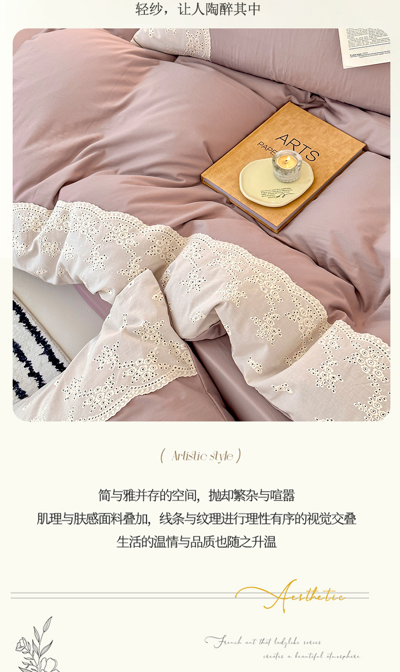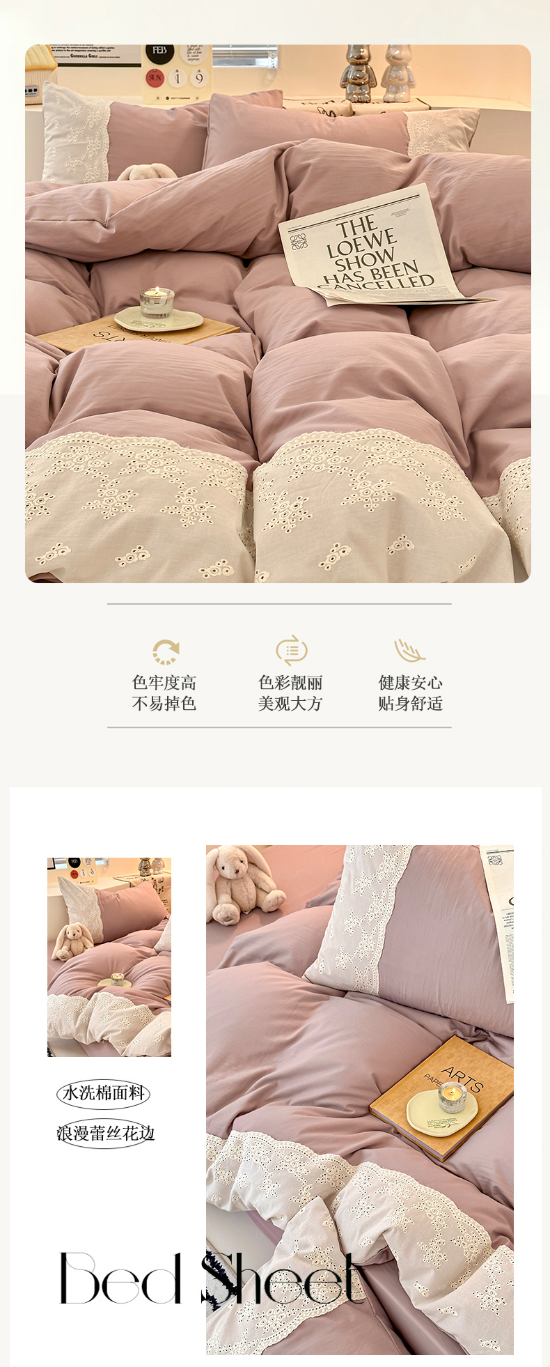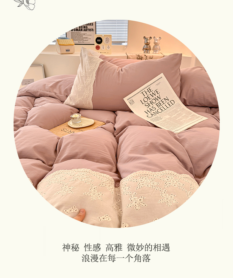 凯洛奇 2025新款1法式小清新蕾丝花边水洗棉四件套-风格一【提供买家秀】 蕾丝花边-玫瑰豆沙