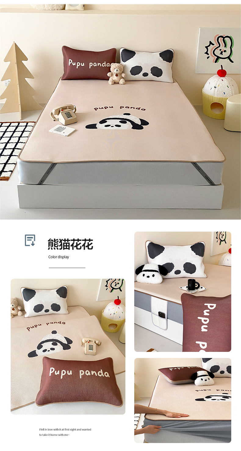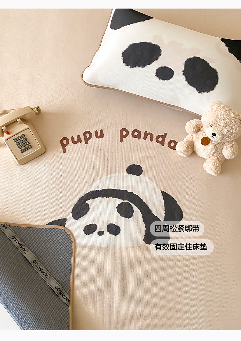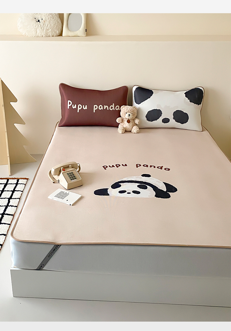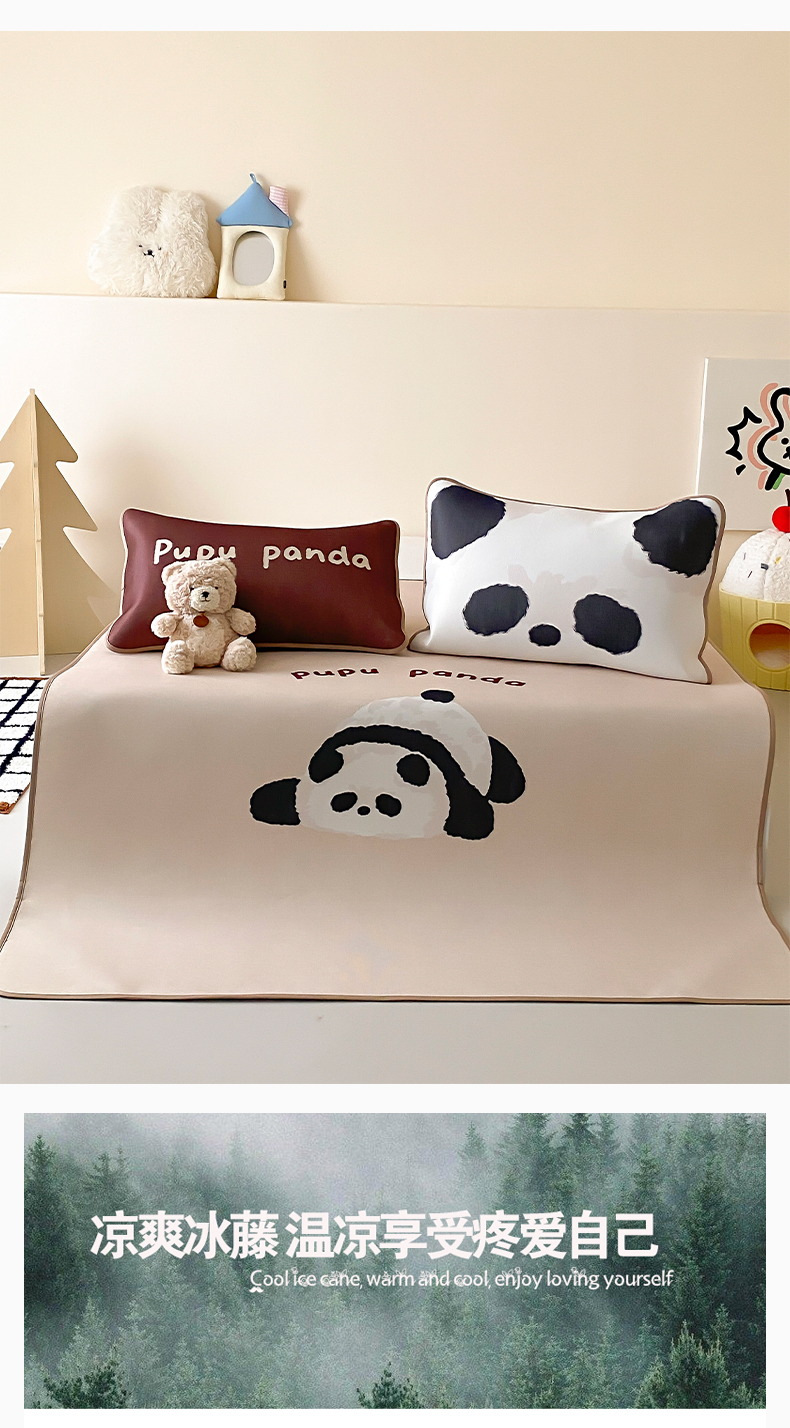 商品名称:三味舒屋 2025新款熊猫系列大版印花冰丝冰藤席凉席 熊猫花花-床笠款