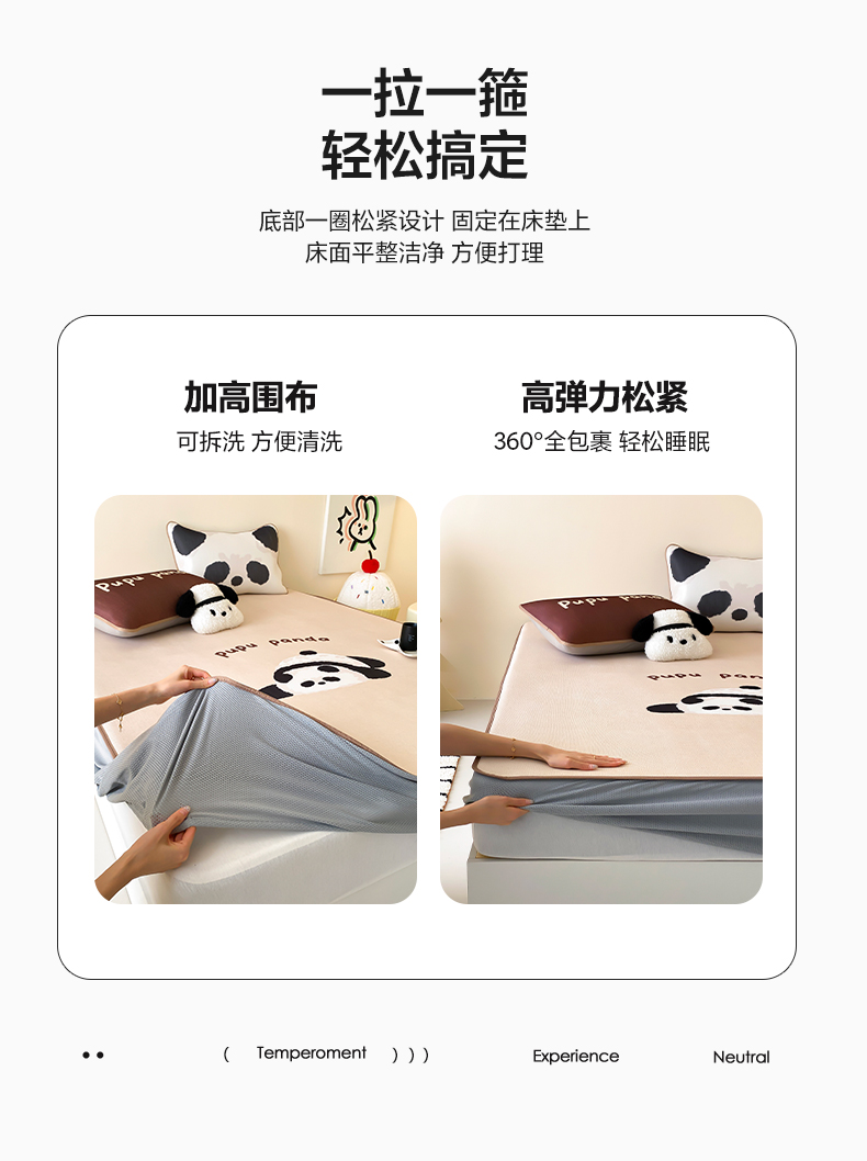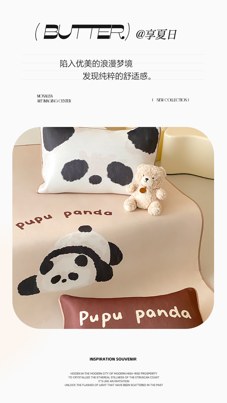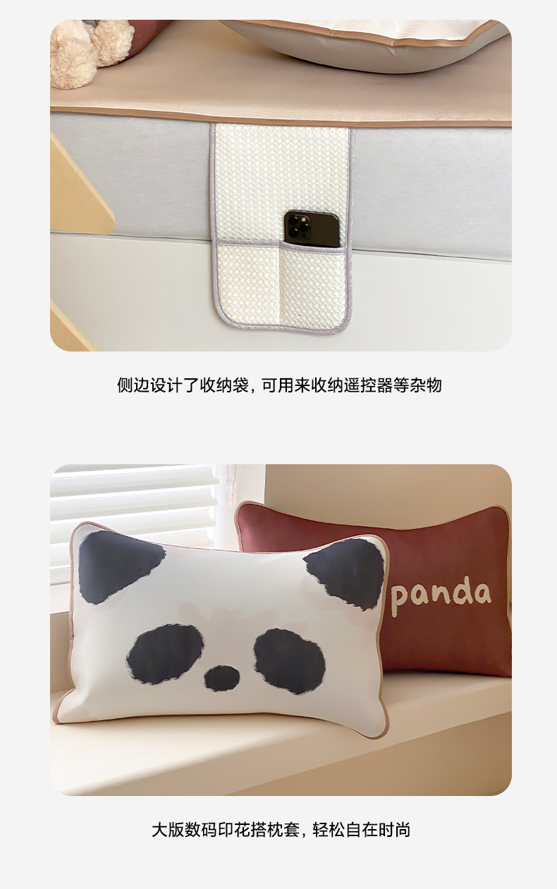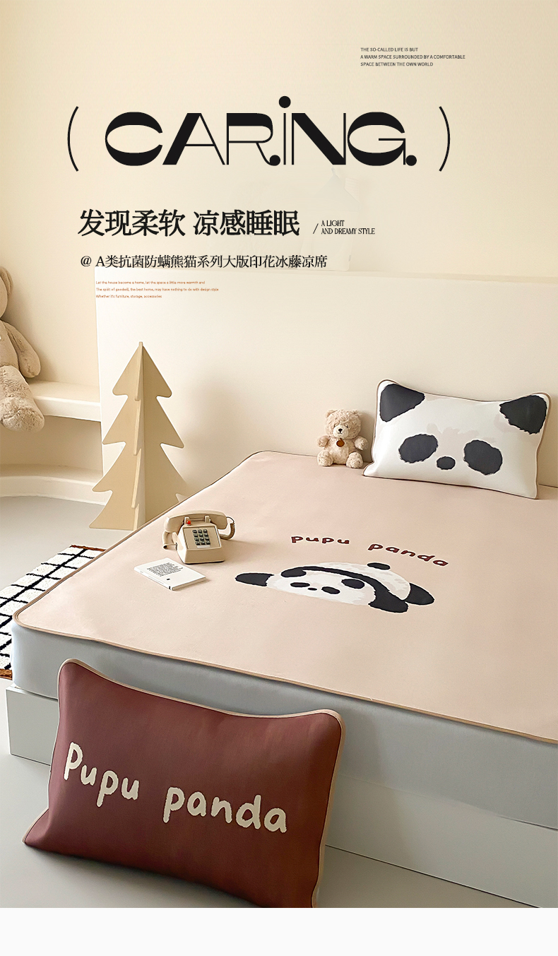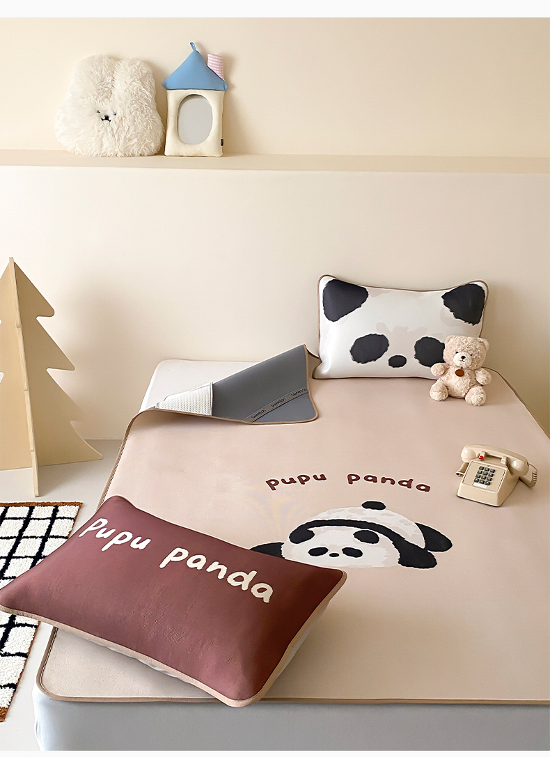 商品名称:三味舒屋 2025新款熊猫系列大版印花冰丝冰藤席凉席 熊猫花花-床笠款