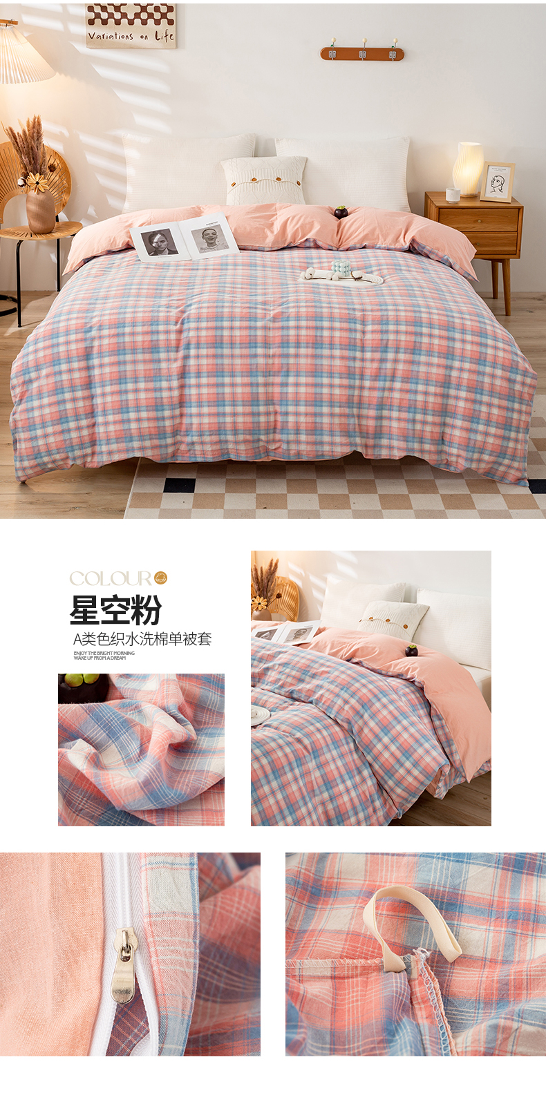 商品名称:2025新款A类色织水洗棉单被套 星空粉