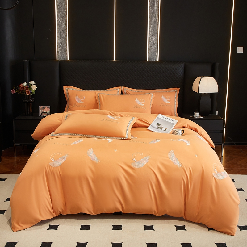 商品名称:佳宇轩 2025爆款水洗棉五彩刺绣四件套简约轻奢织带绣花床单床笠被罩4件套-蜜羽 蜜羽-橘黄