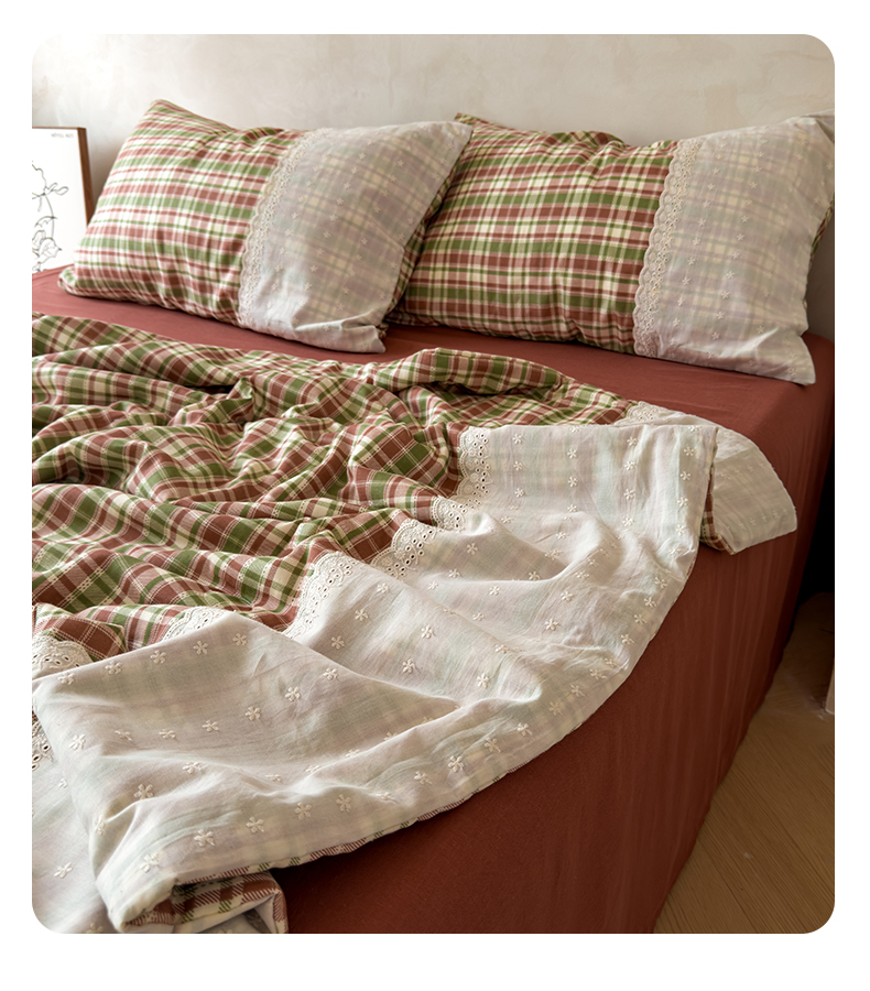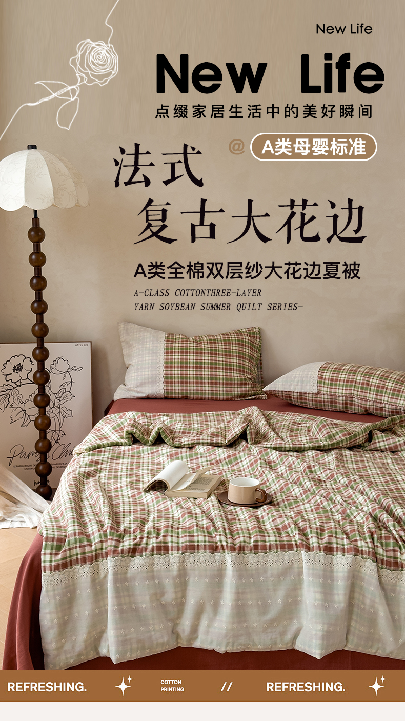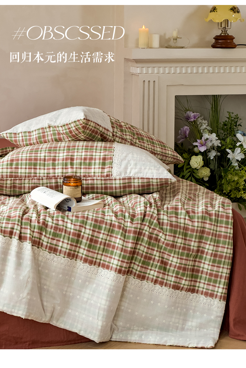 当前位置: 91家纺网 > 商品网购 > 床品套件 > 四件套 > 曼町家居 2025春夏新款全棉纯棉双层纱法式镂空立体大花边夏被夏凉被空调被四件套 洛可可恋