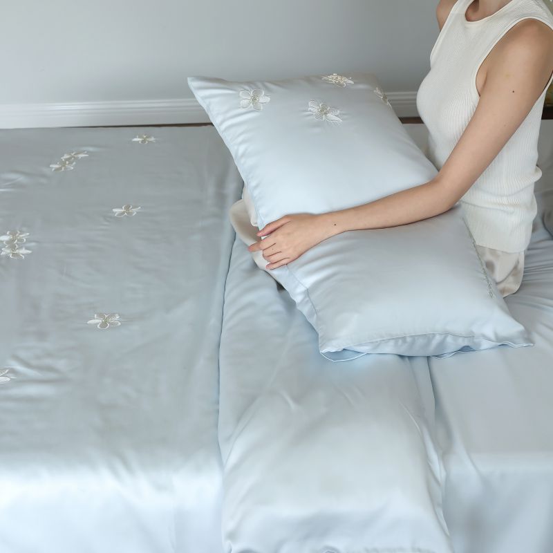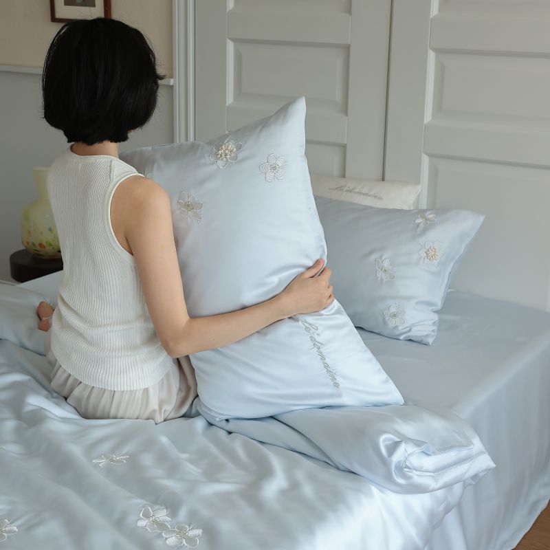 (总)初拾 2025新款100s双股澳棉刺绣四件套-赫拉公主(棉),棉 赫拉公主-海边蓝,棉 赫拉公主-奶油粉