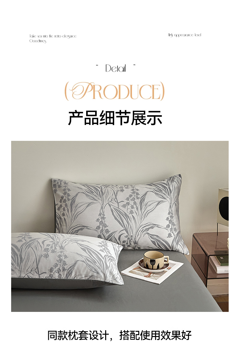 商品名称:琪格格纺织 2025新款色织天丝棉提花四件套 风铃草-灰