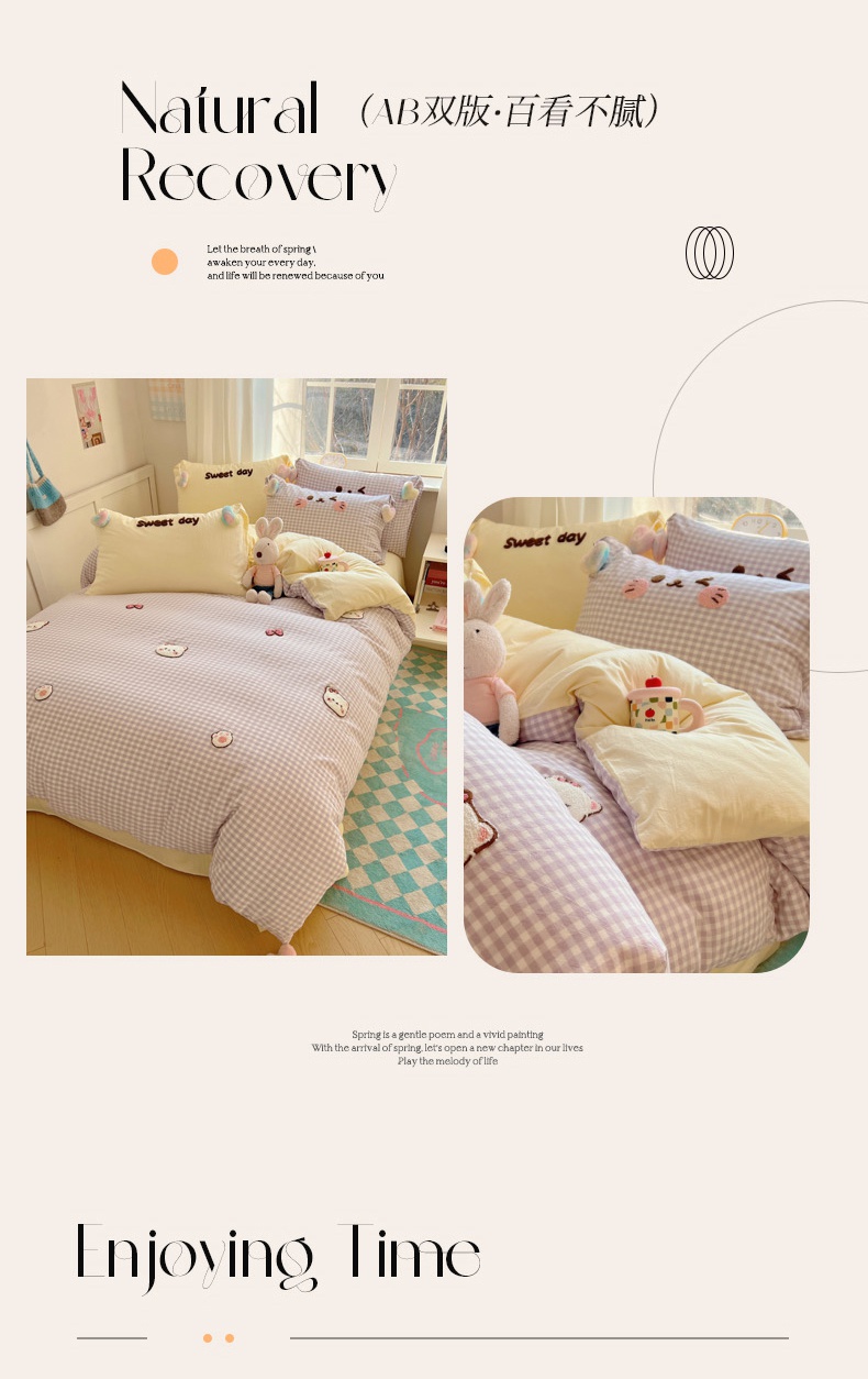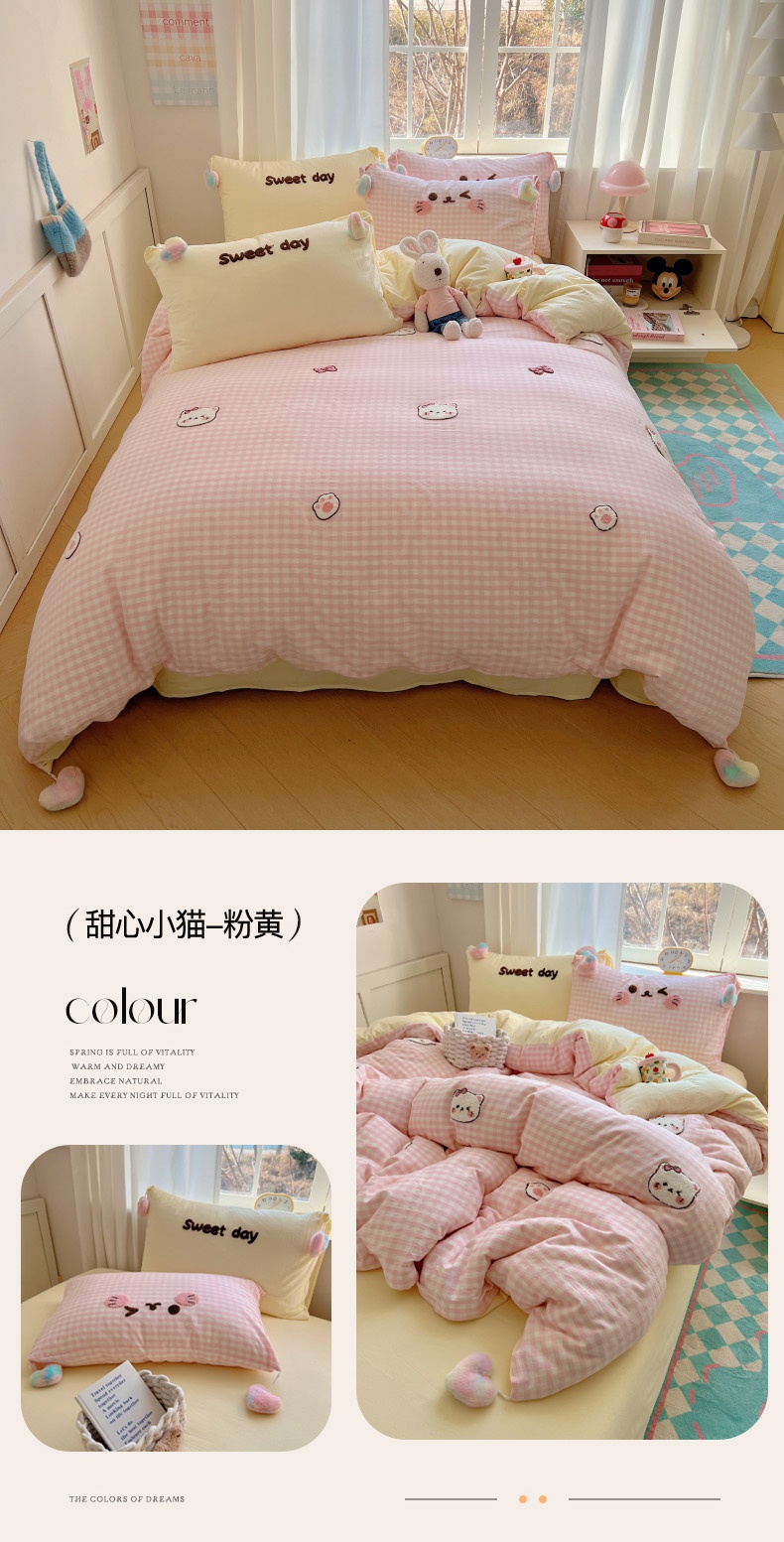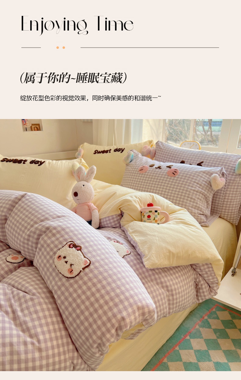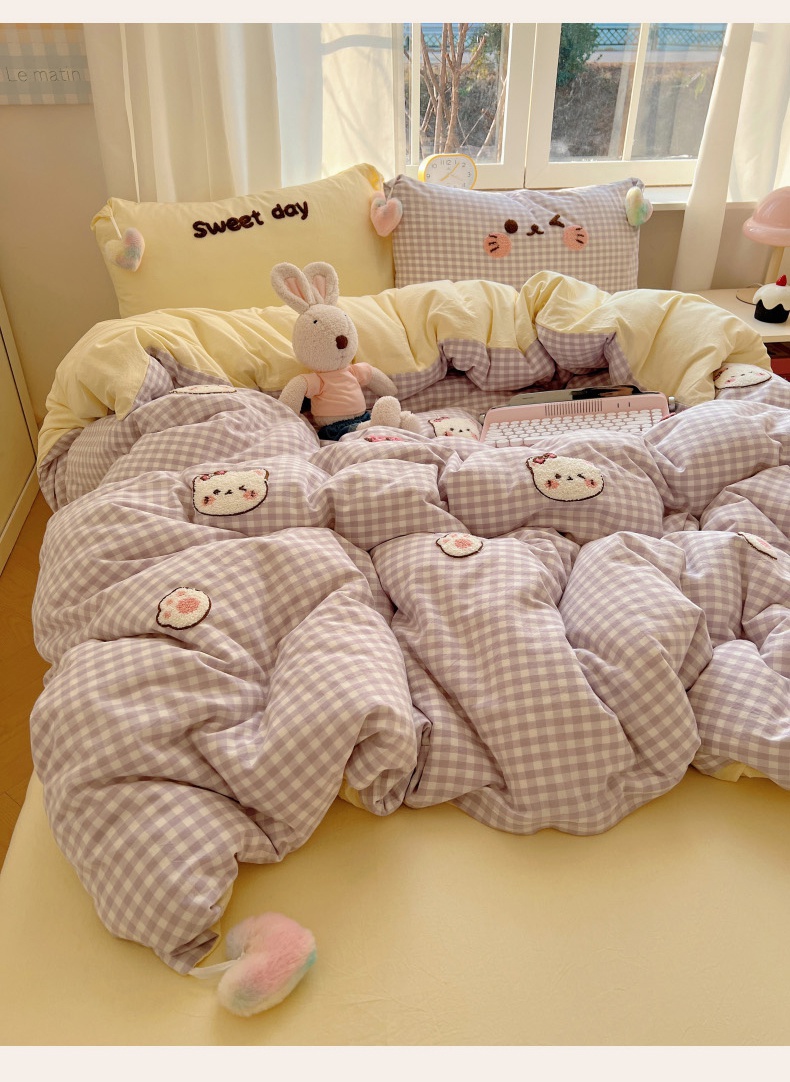 当前位置: 91家纺网 > 商品网购 > 床品套件 > 四件套 > 全棉普通四件套 > 丽涵家纺 2025新款色织水洗棉毛巾绣四件套-甜心小猫系列 甜心小猫-紫格-毛球款