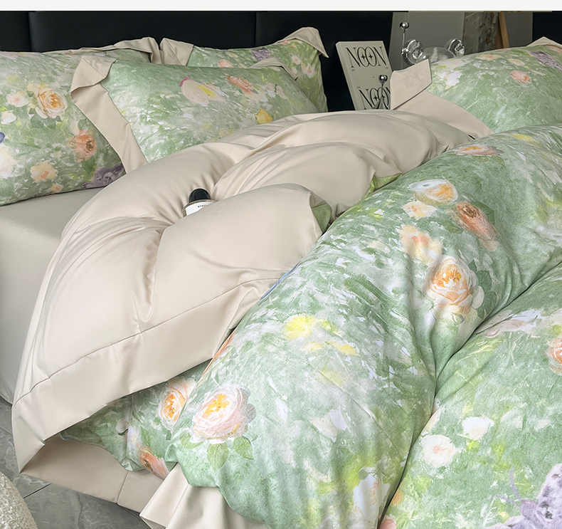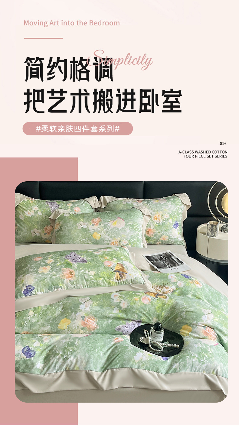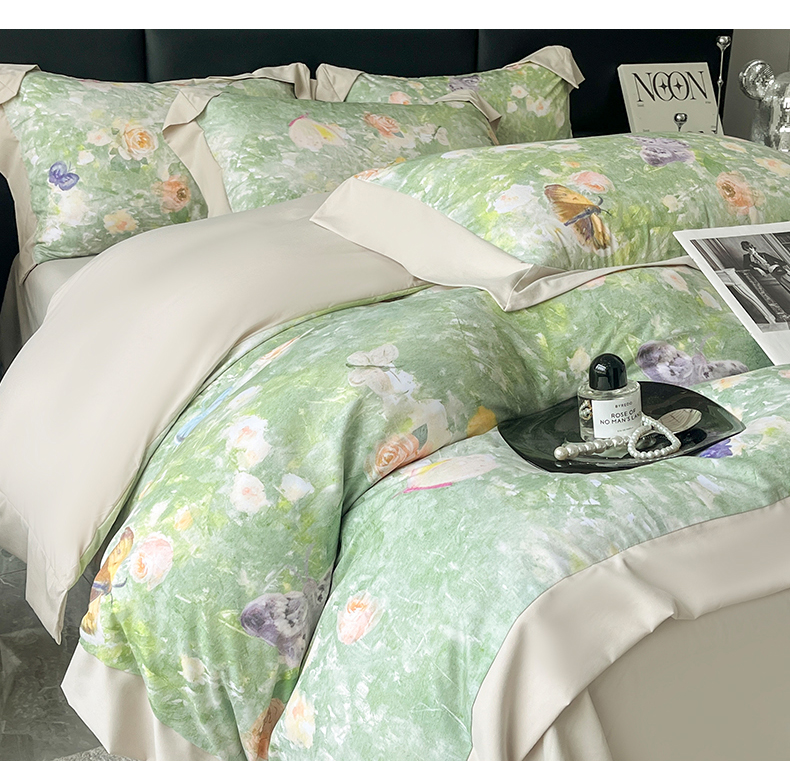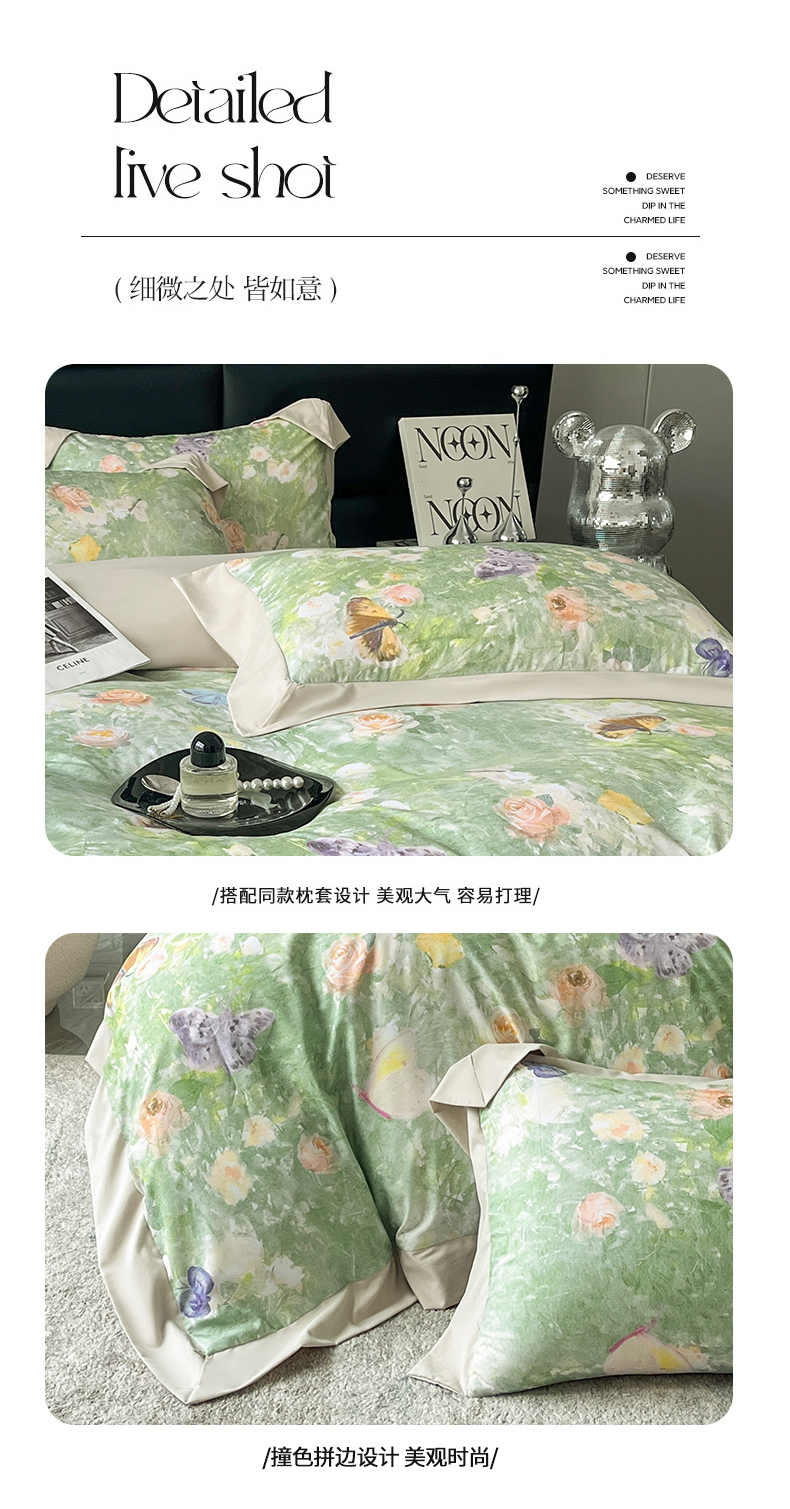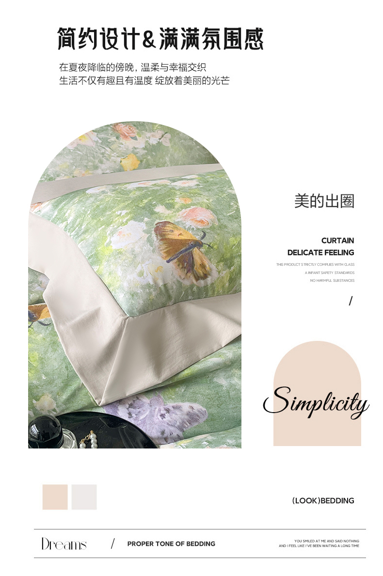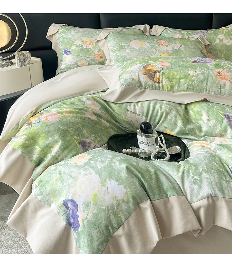 商品名称:KA家纺 2025新款A类轻奢大拼角亲肤棉数码印花云朵棉四件套 蝶舞