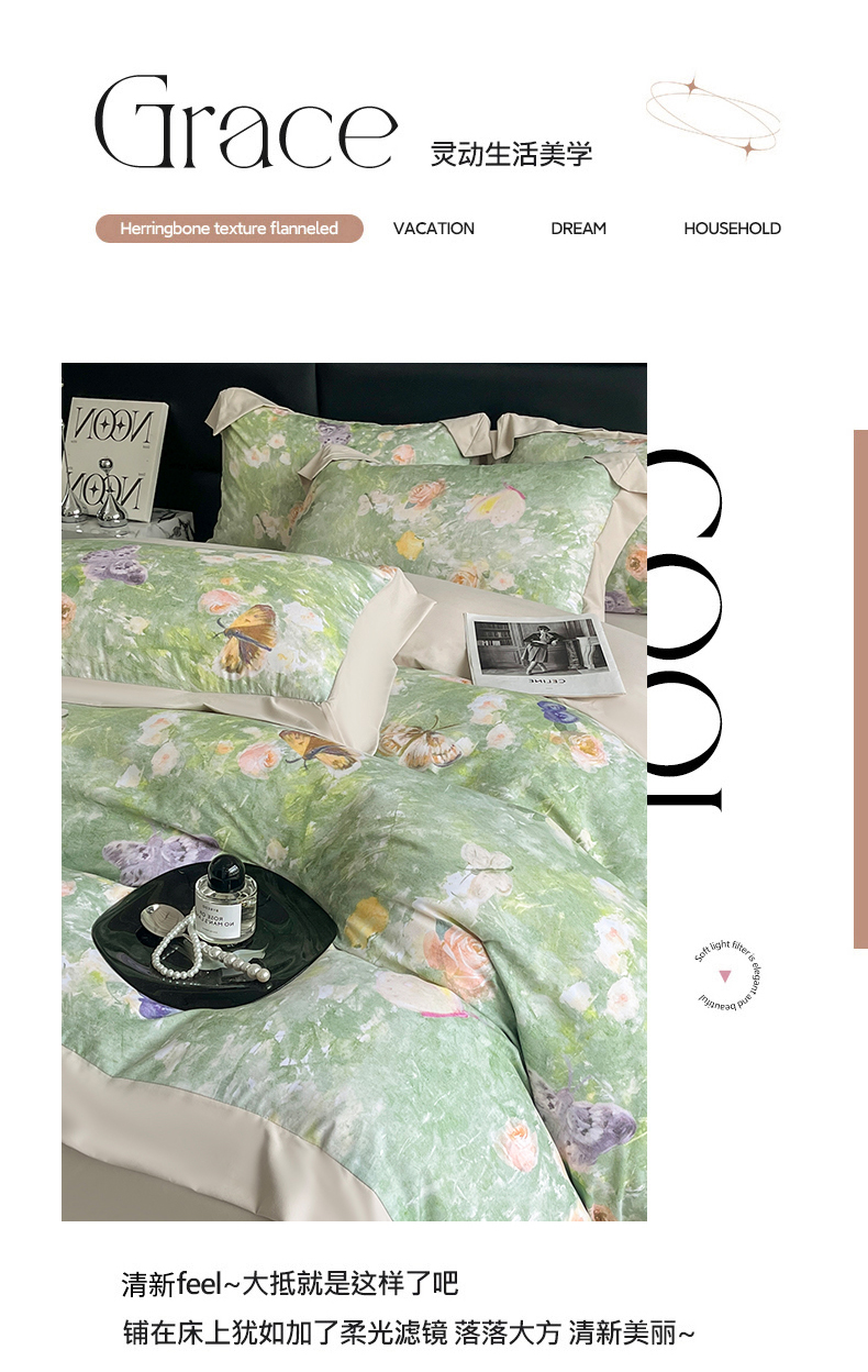 (总)KA家纺 2025新款秋冬轻奢高克重双拼角牛奶绒四件套,玫瑰之吻,繁花似锦,复古粉黛,鎏金岁月,木棉花,山奈,优雅生活,虞美人