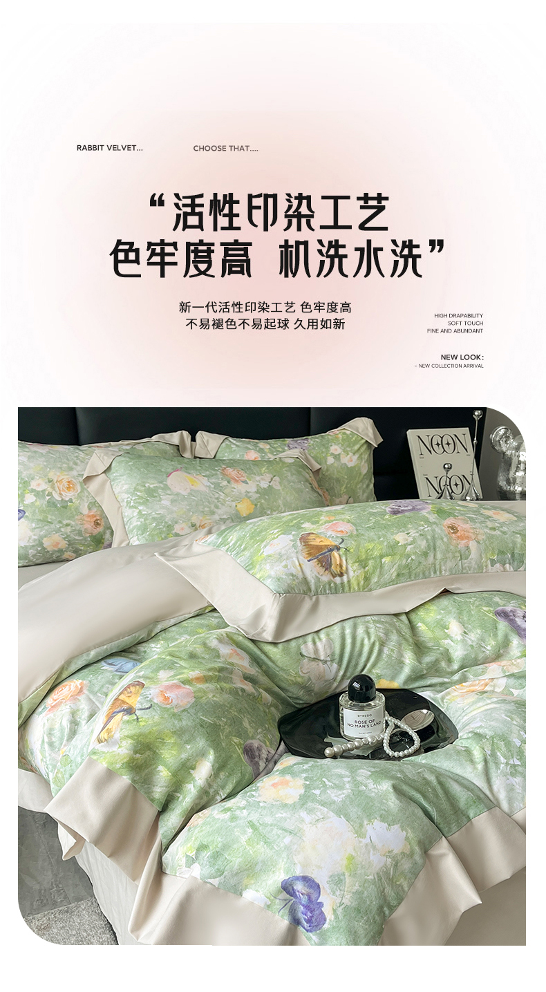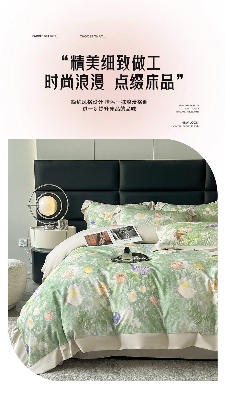(总)KA家纺 2025新款秋冬兔毛边工艺款兔毛牛奶绒四件套,豹闪闪,蝶飞飞,红彤彤,花满满,洛可可,情浓浓,心乱乱