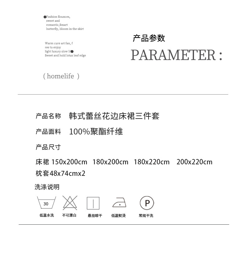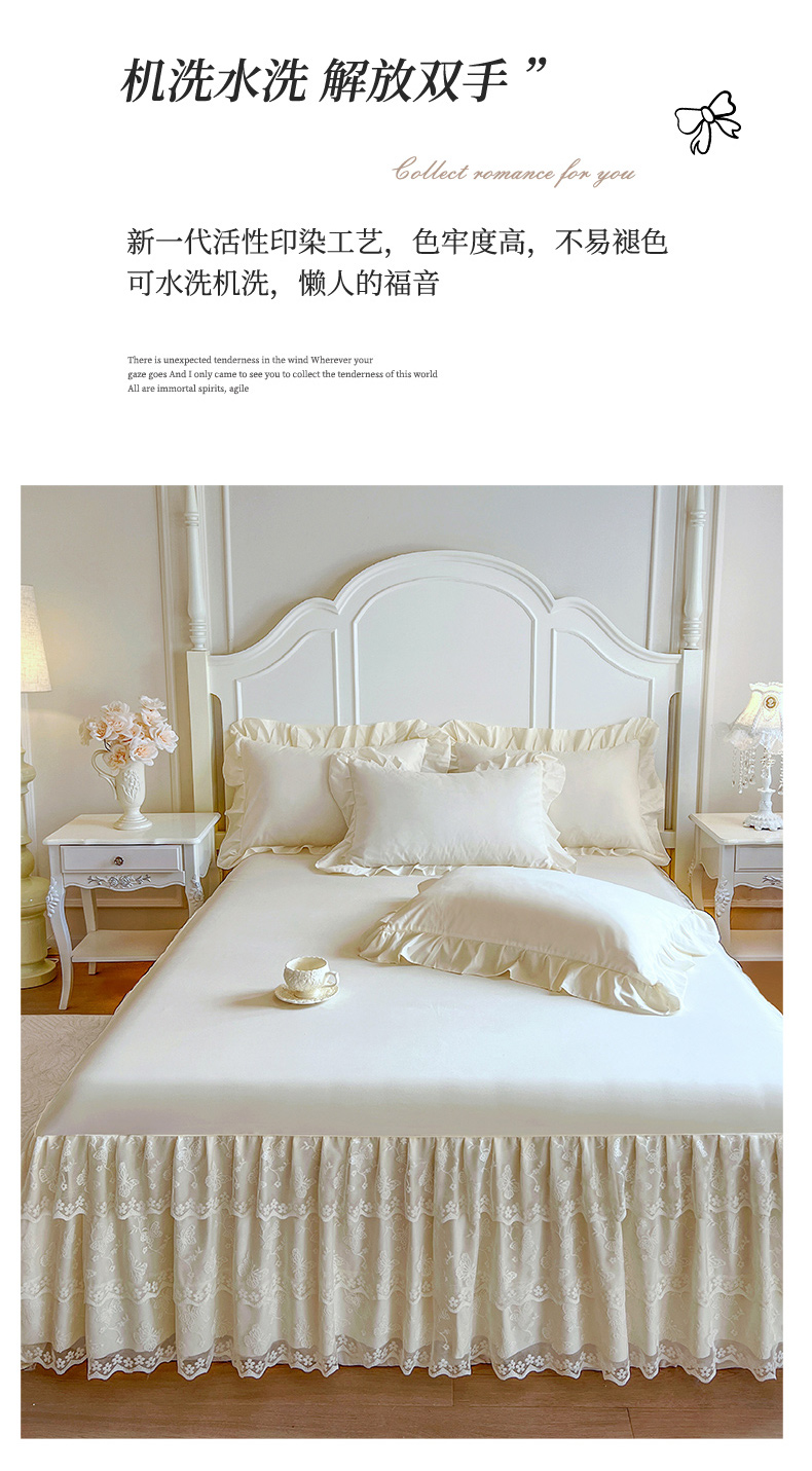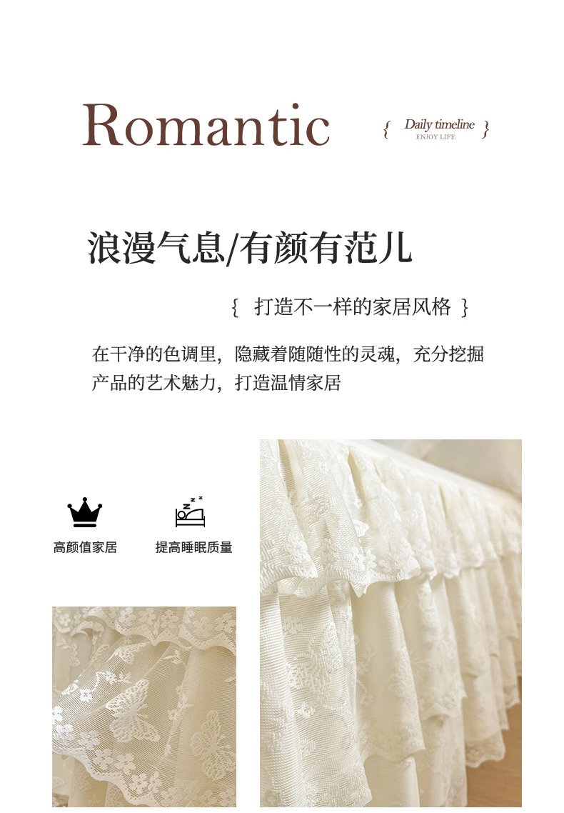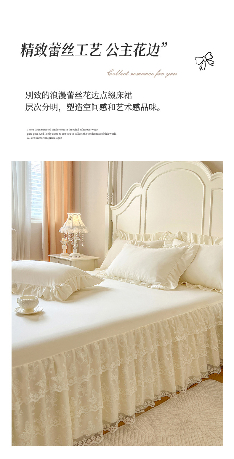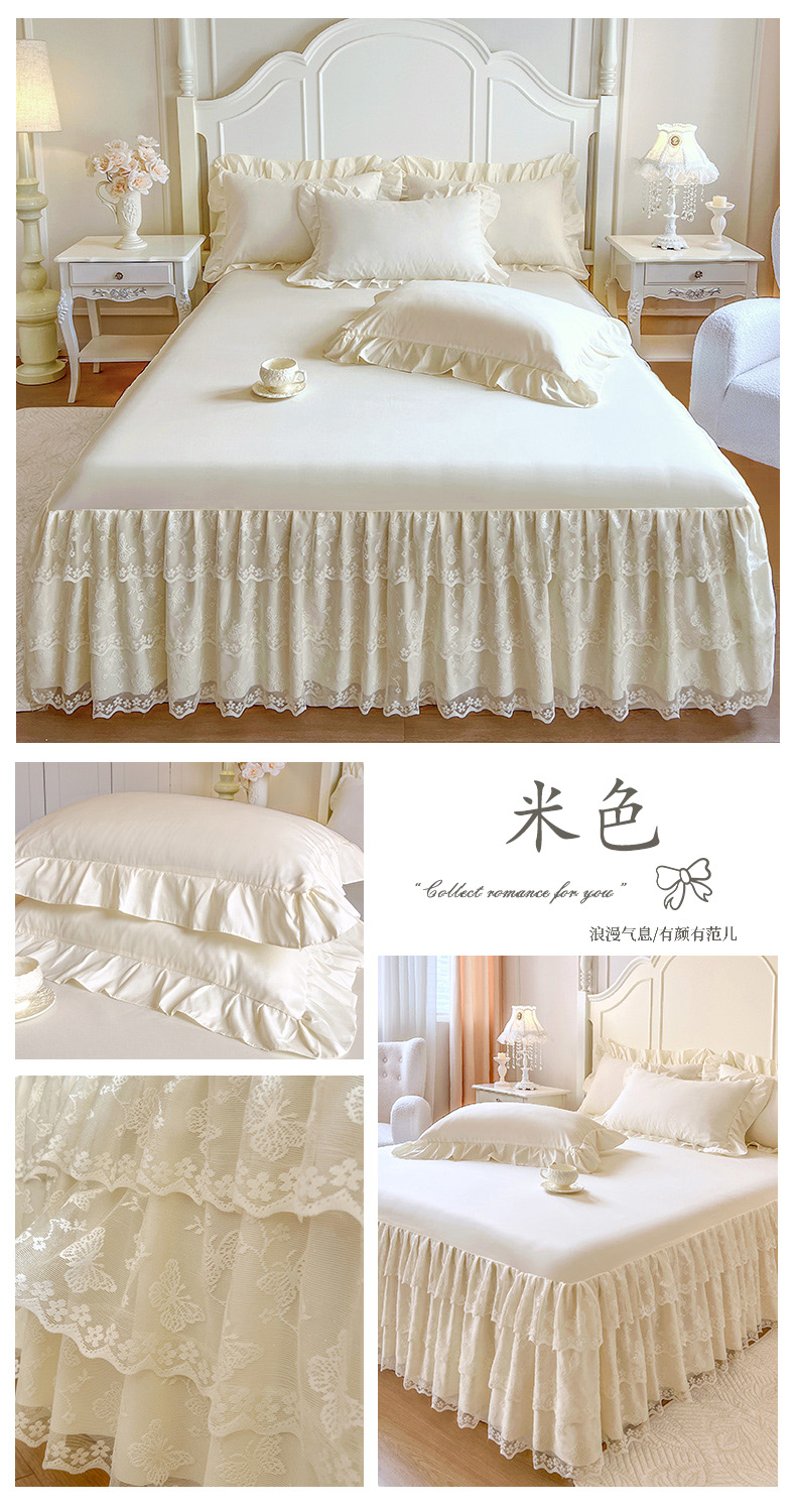 商品名称:乐朵家居 2025新款 25-2 蝶影 蕾丝床裙 -米