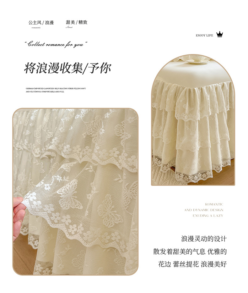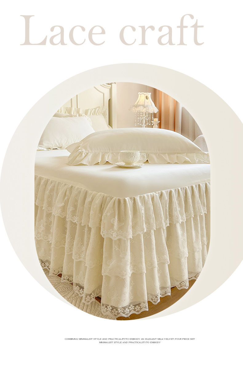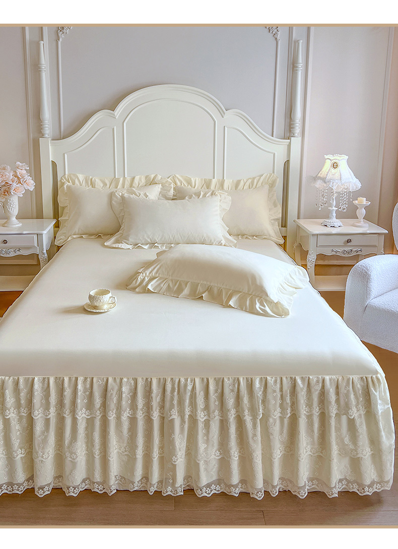 乐朵家居 2025新款 25-2 蝶影 蕾丝床裙 -米