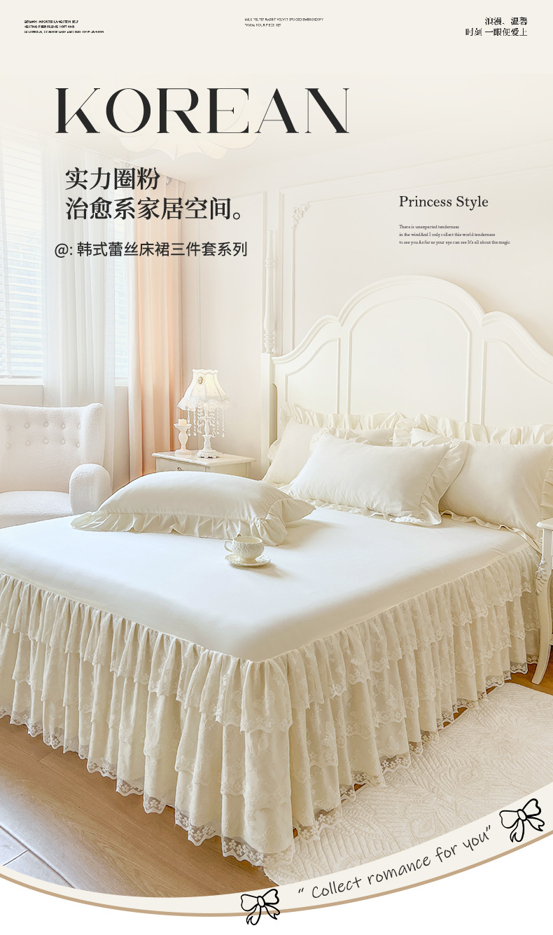 (总)乐朵家居 2025新款 25-1 芯语 蕾丝床裙,豆沙,灰,卡其,绿,米,紫