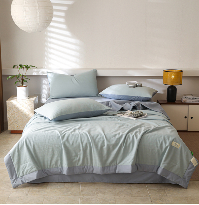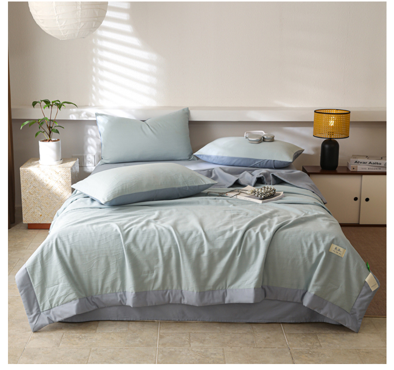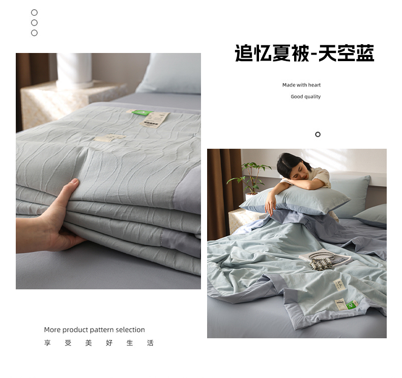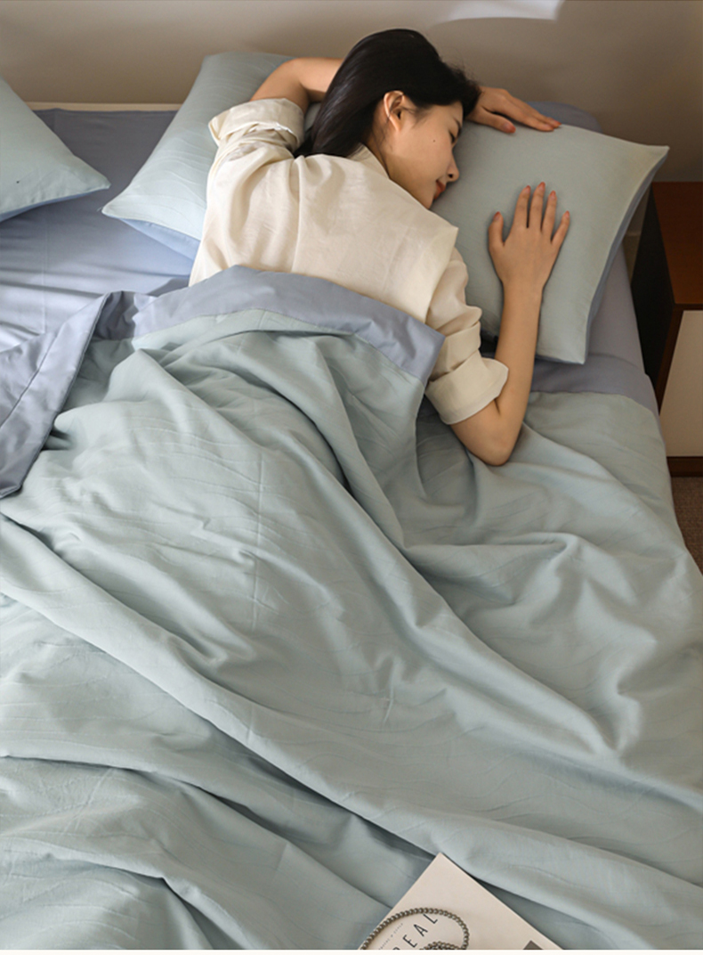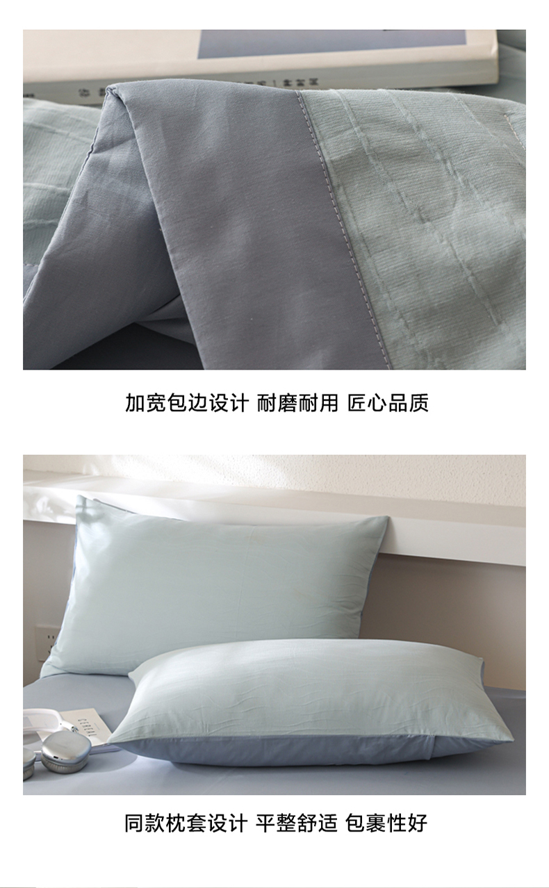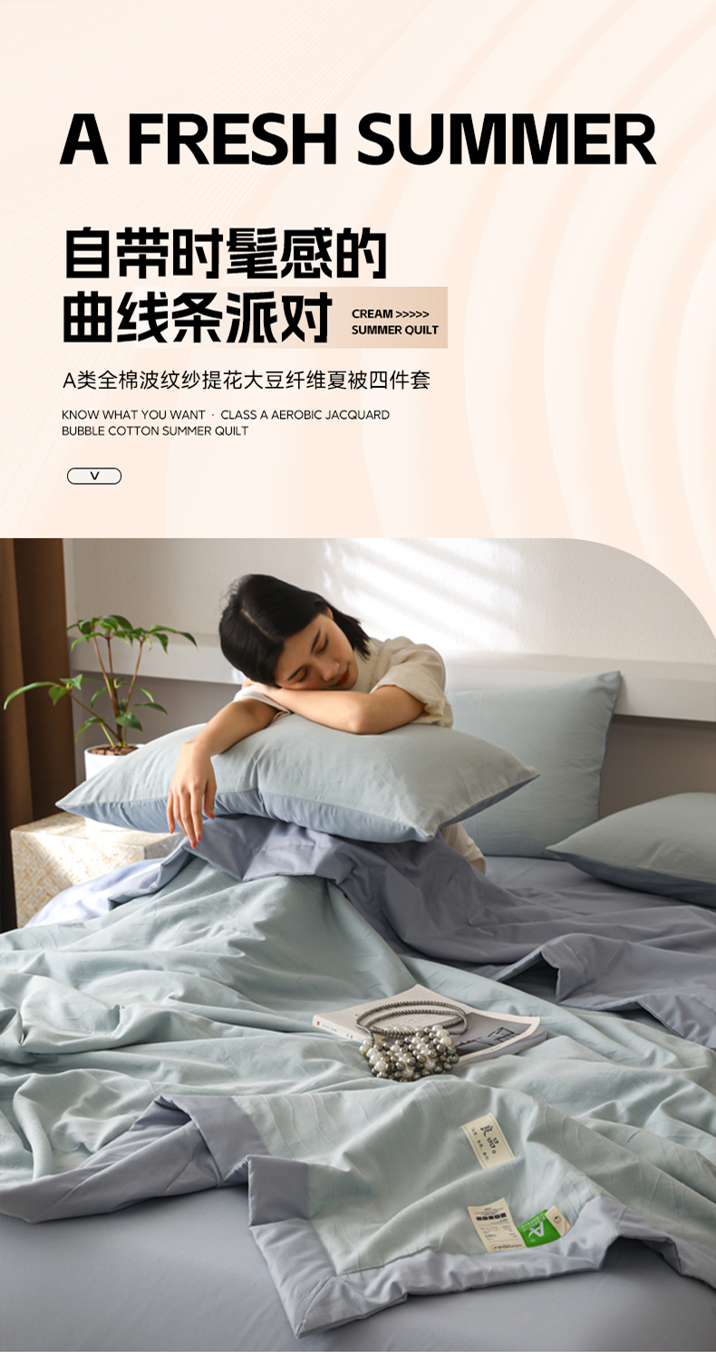 当前位置: 91家纺网 > 商品网购 > 床品套件 > 四件套 > 全棉普通四件套 > 眠博士 2025新款A类全棉波纹纱提花大豆纤维追忆包边夏被四件套 追忆夏被-天空蓝