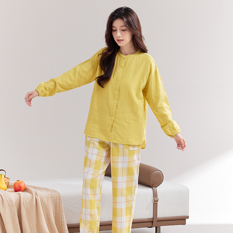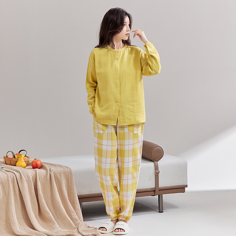 商品名称:良品汇馆 2025【国潮立领双层纱家居服】日式无印国潮风家居服良品纯棉双层纱情侣居家服全棉睡衣套装立领 国潮风女款灰