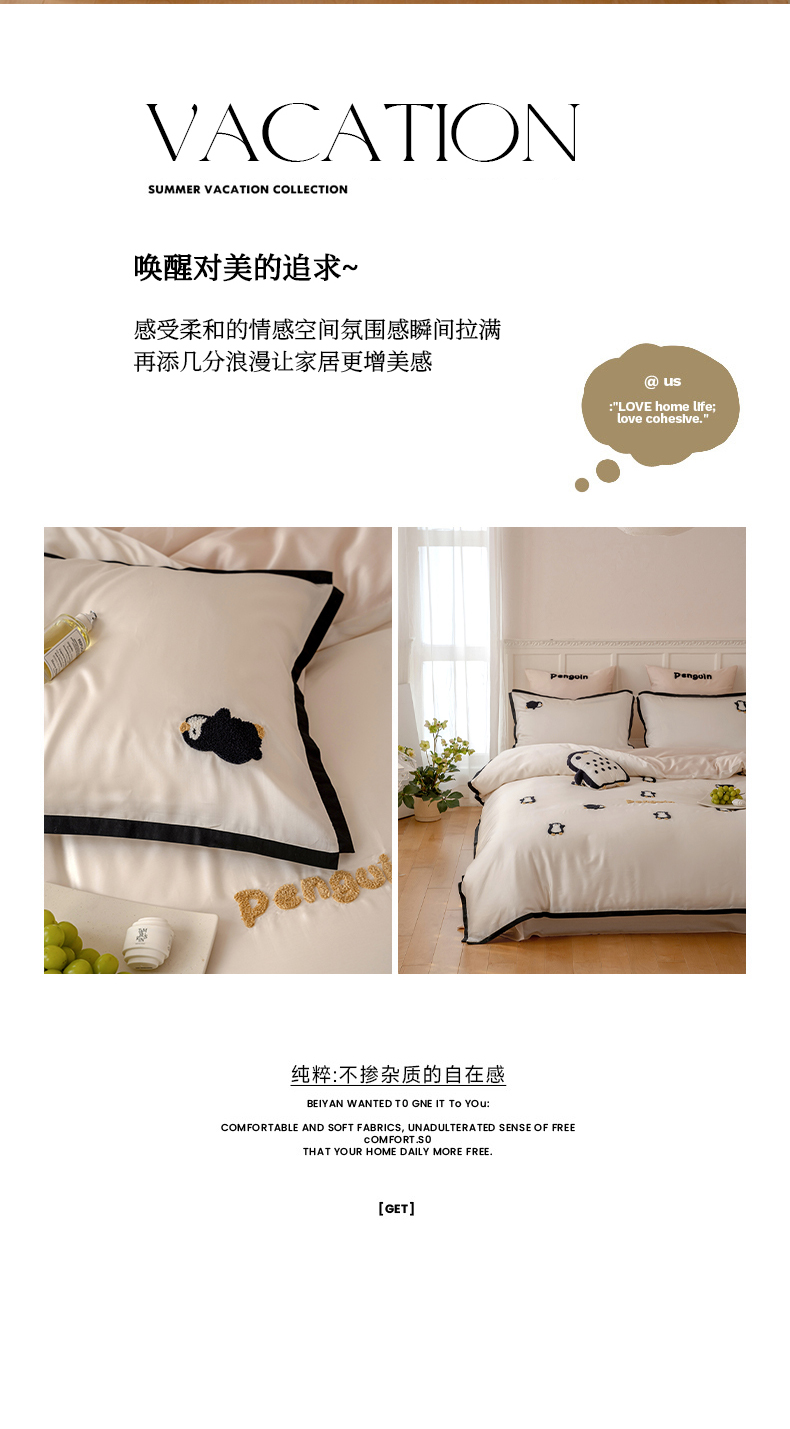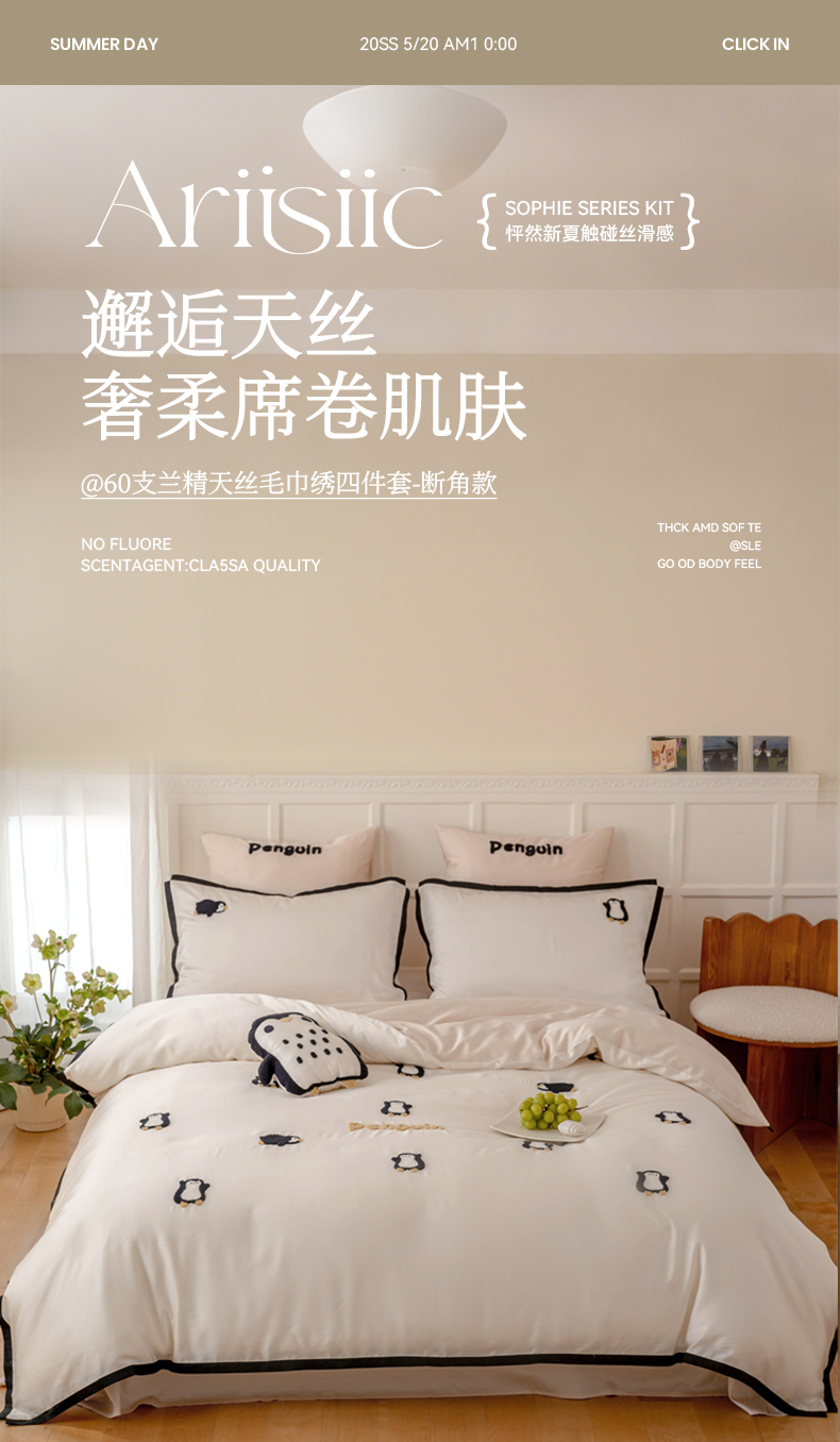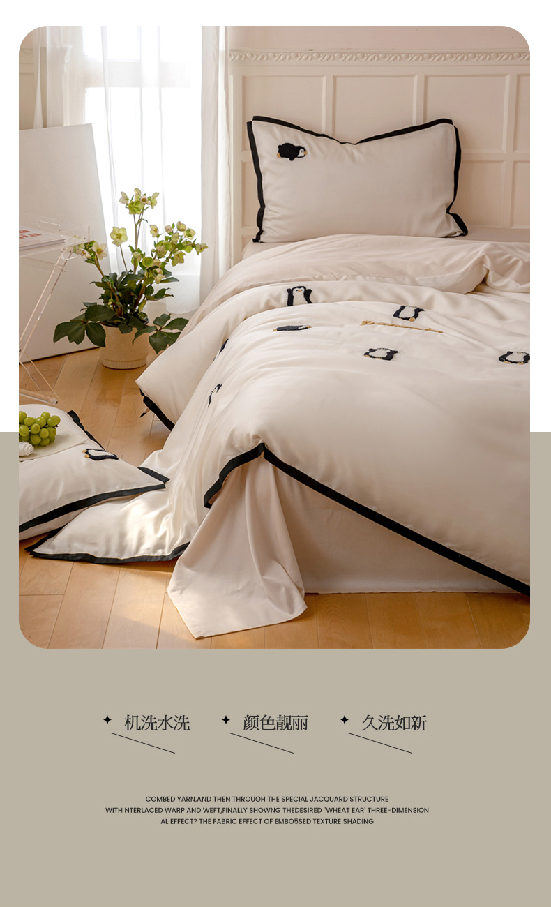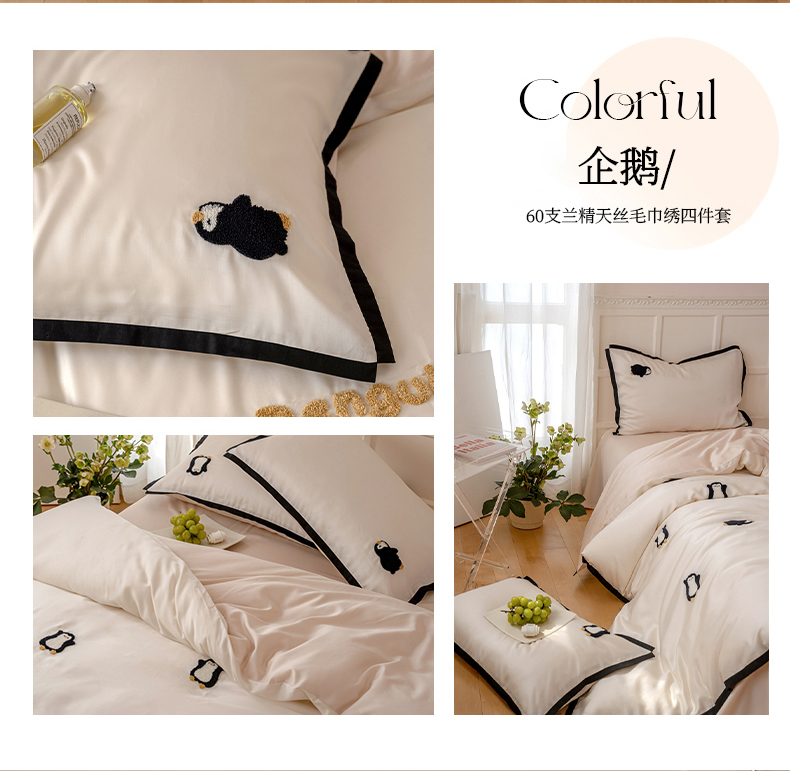 当前位置: 91家纺网 > 商品网购 > 床品套件 > 四件套 > 莱赛尔四件套 > FORTWO家纺原创设计(FOR TWO家纺) 2025新款60支兰精天丝毛巾绣四件套-断角款 企鹅