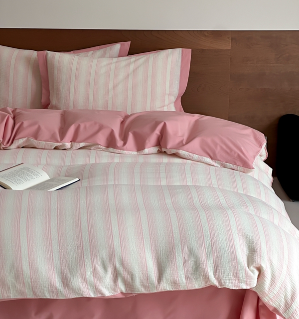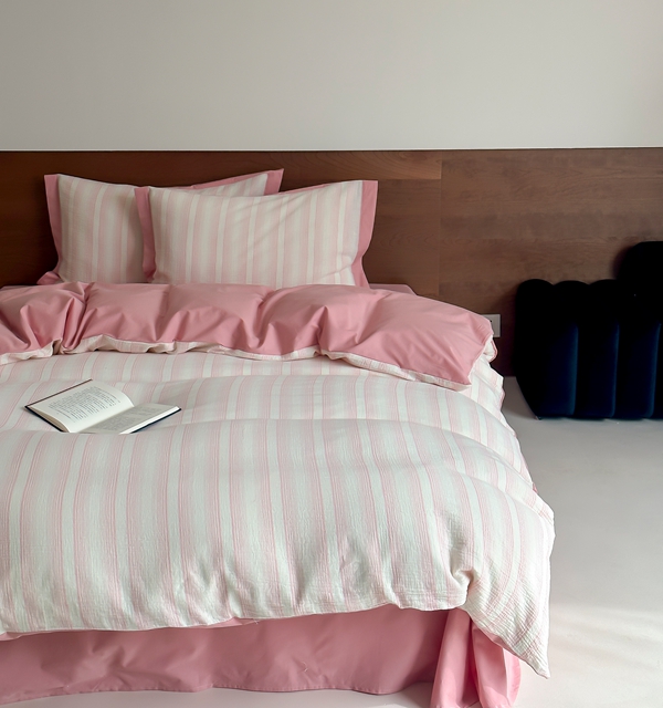 (总)旷野2025新款全棉纯棉A类婴幼儿级双层纱皱皱纱四件套,理想三旬-粉,理想三旬-灰,理想三旬-蓝,理想三旬-绿