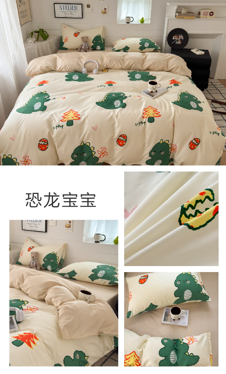 可可家纺 2025新款印花卡通芦荟棉被套亲肤被罩单件小清新 恐龙宝宝,恐龙宝宝