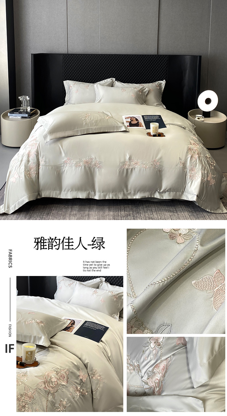 (总)优悦 2025新款冰丝简奢绣花四件套,巴黎旧梦-白,巴黎旧梦-灰,巴黎旧梦-绿,北欧情调-红,北欧情调-灰,北欧情调-香槟,流光岁月-白,流光岁月-灰,流光岁月-香槟,雅韵佳人-粉,雅韵佳人-蓝,雅韵佳人-绿,雅韵佳人-紫