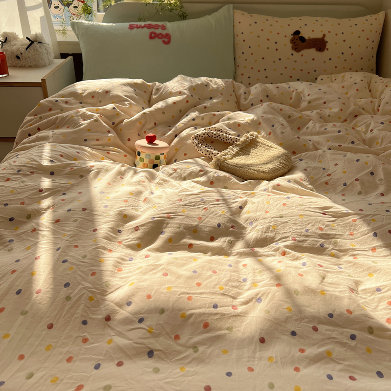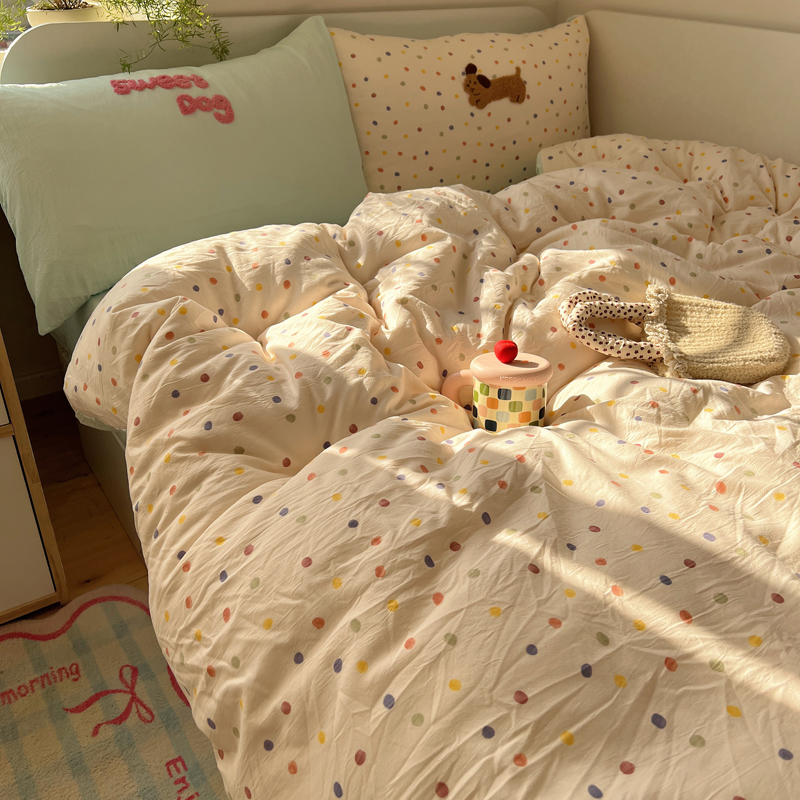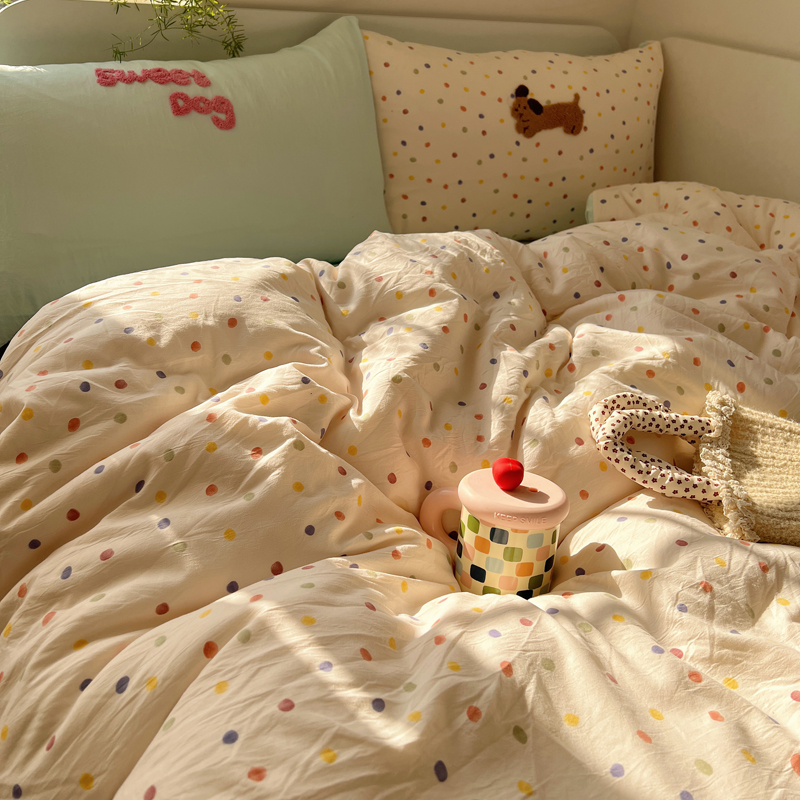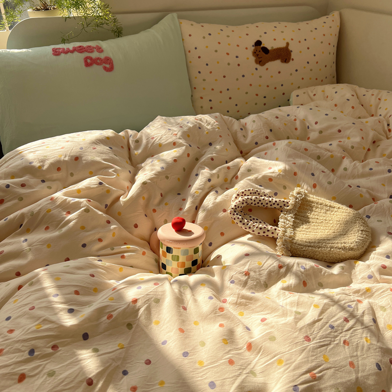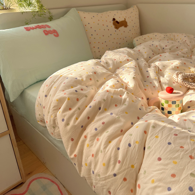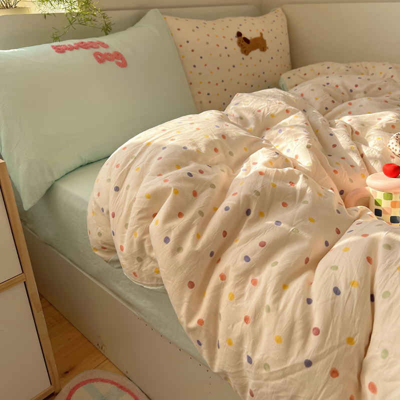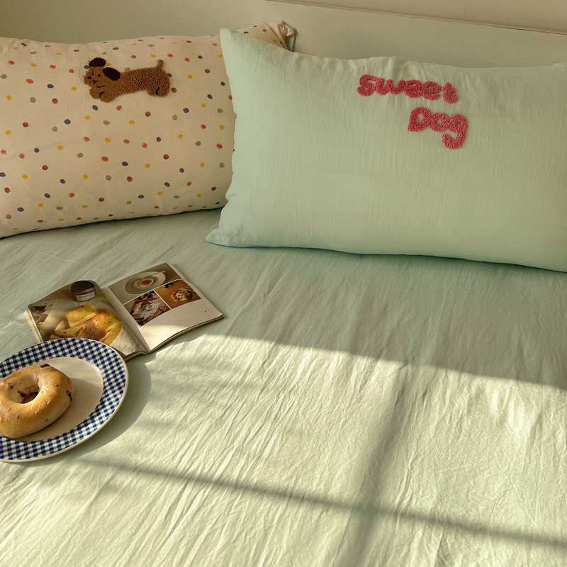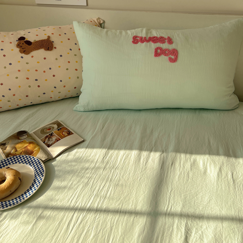 商品名称:顾里家纺 2025新款ins韩系童趣毛巾绣云朵棉四件套 彩色腊肠狗