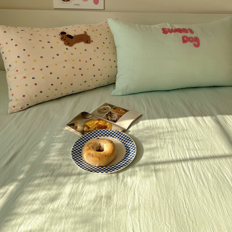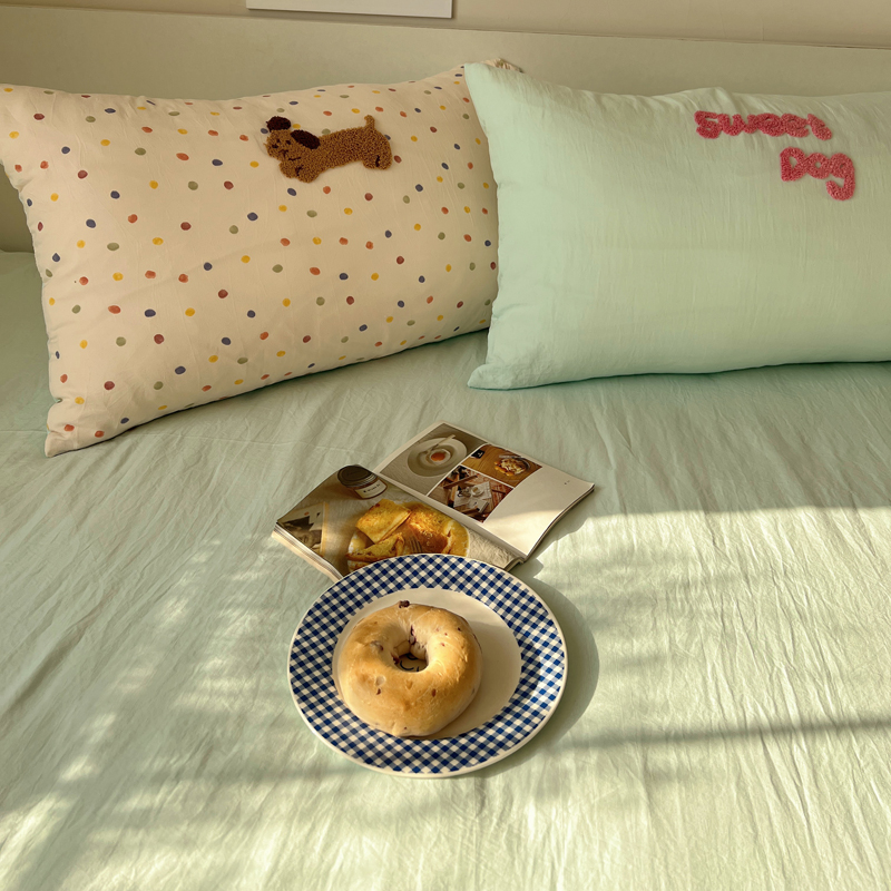 顾里家纺 2025新款ins韩系童趣毛巾绣云朵棉四件套 彩色腊肠狗