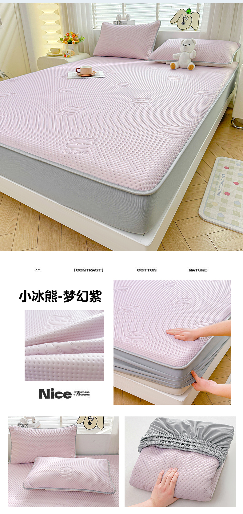 慕木2025新款A类凉感丝小冰熊云母冰丝凉席床笠夏被系列 小冰熊-梦幻紫床笠