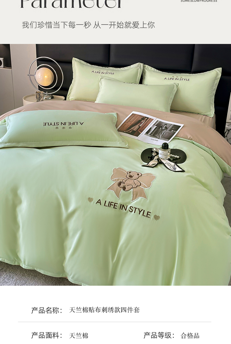 当前位置: 91家纺网 > 商品网购 > 床品套件 > 四件套 > 其它四件套 > 汣沐生活 2025新款高克重水洗天竺棉贴布刺绣款四件套 奶茶萌宝-高级灰+奶白