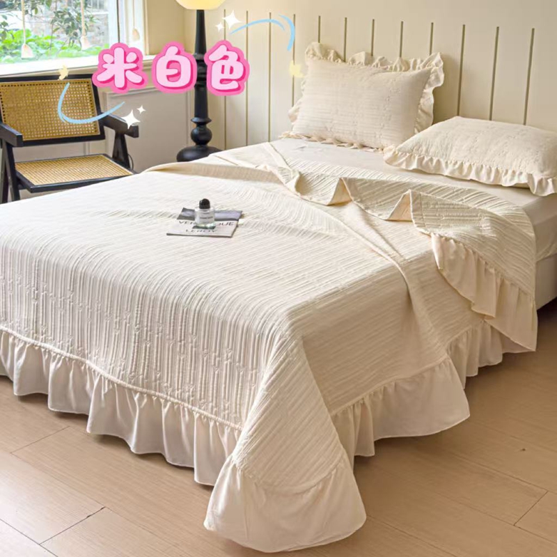 (总)希朵家纺 2025新款麻夫格床盖三件套,豆沙粉,米白色,牛油果绿,清泉绿,时尚灰,天空蓝,优雅紫