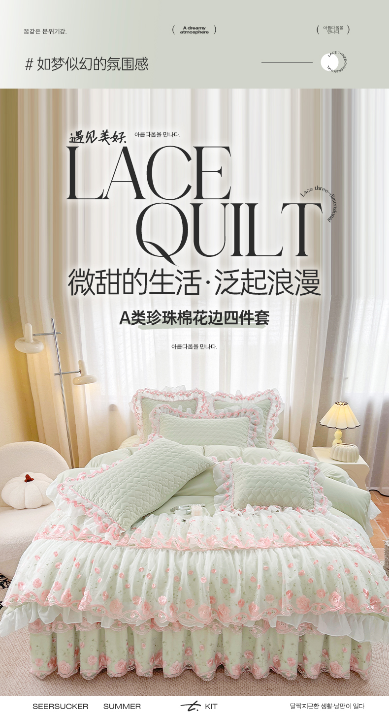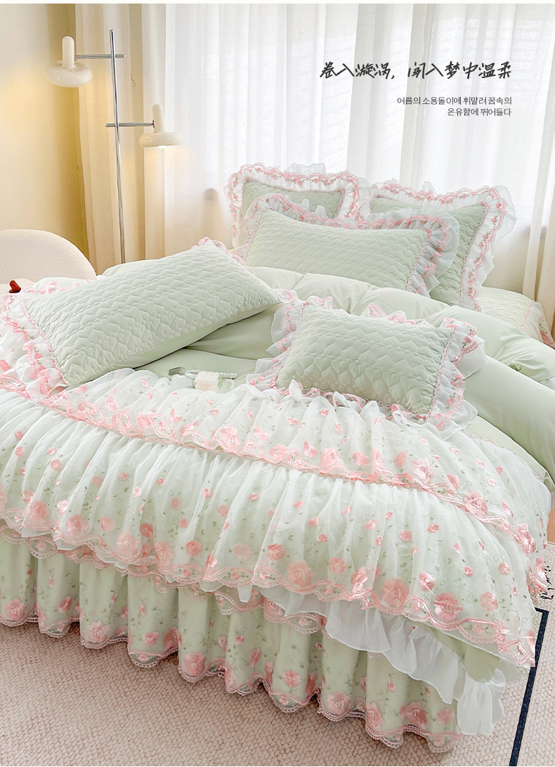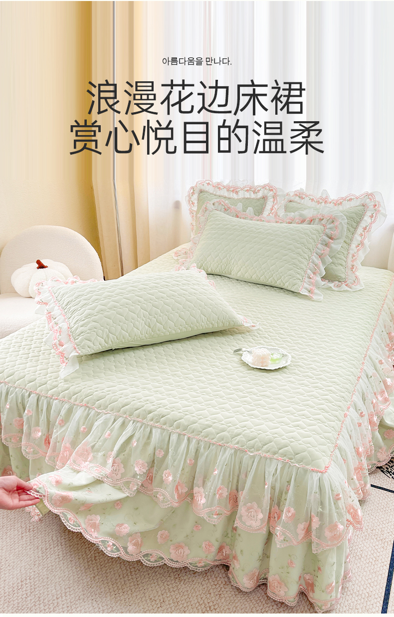 (总)罗艺轩 2025新款A类珍珠棉花边床裙四件套-梦幻花园