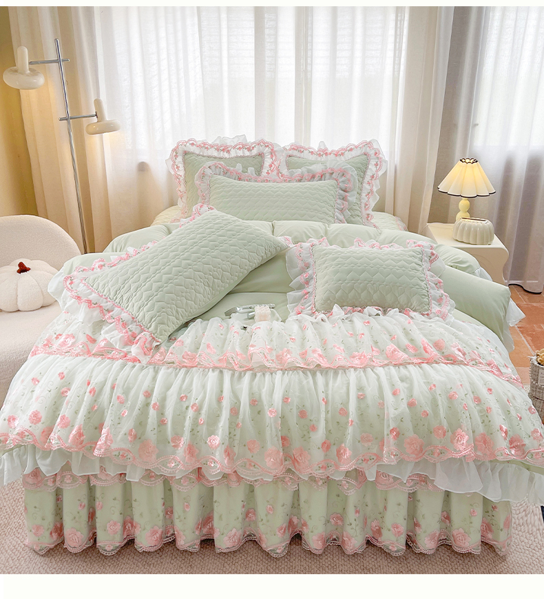 商品名称:(总)罗艺轩 2025新款A类珍珠棉花边床裙四件套-梦幻花园
