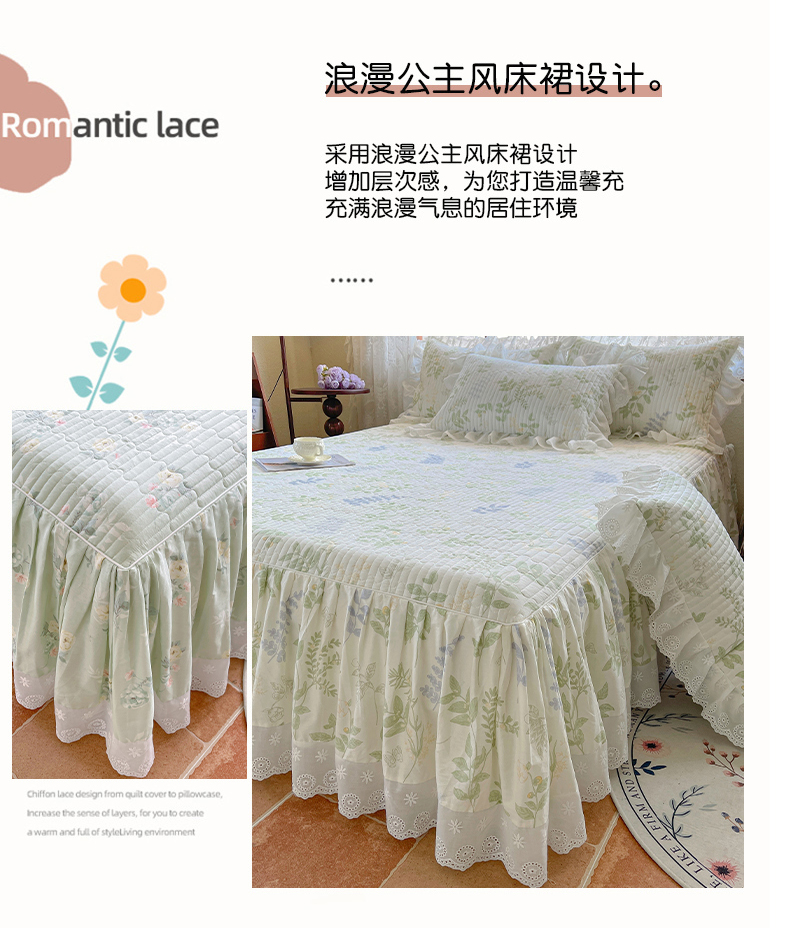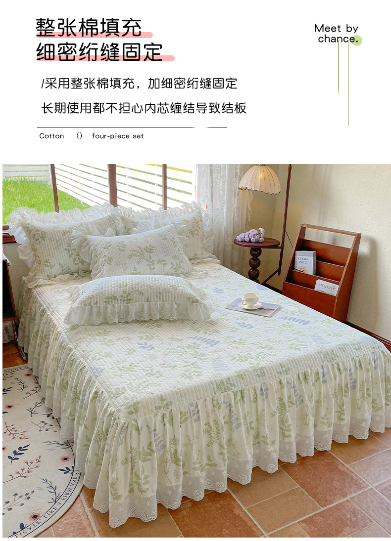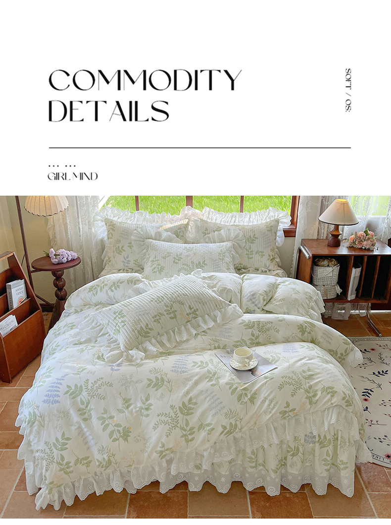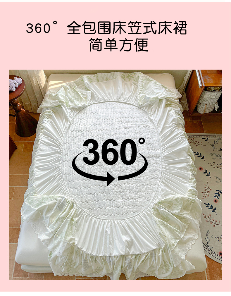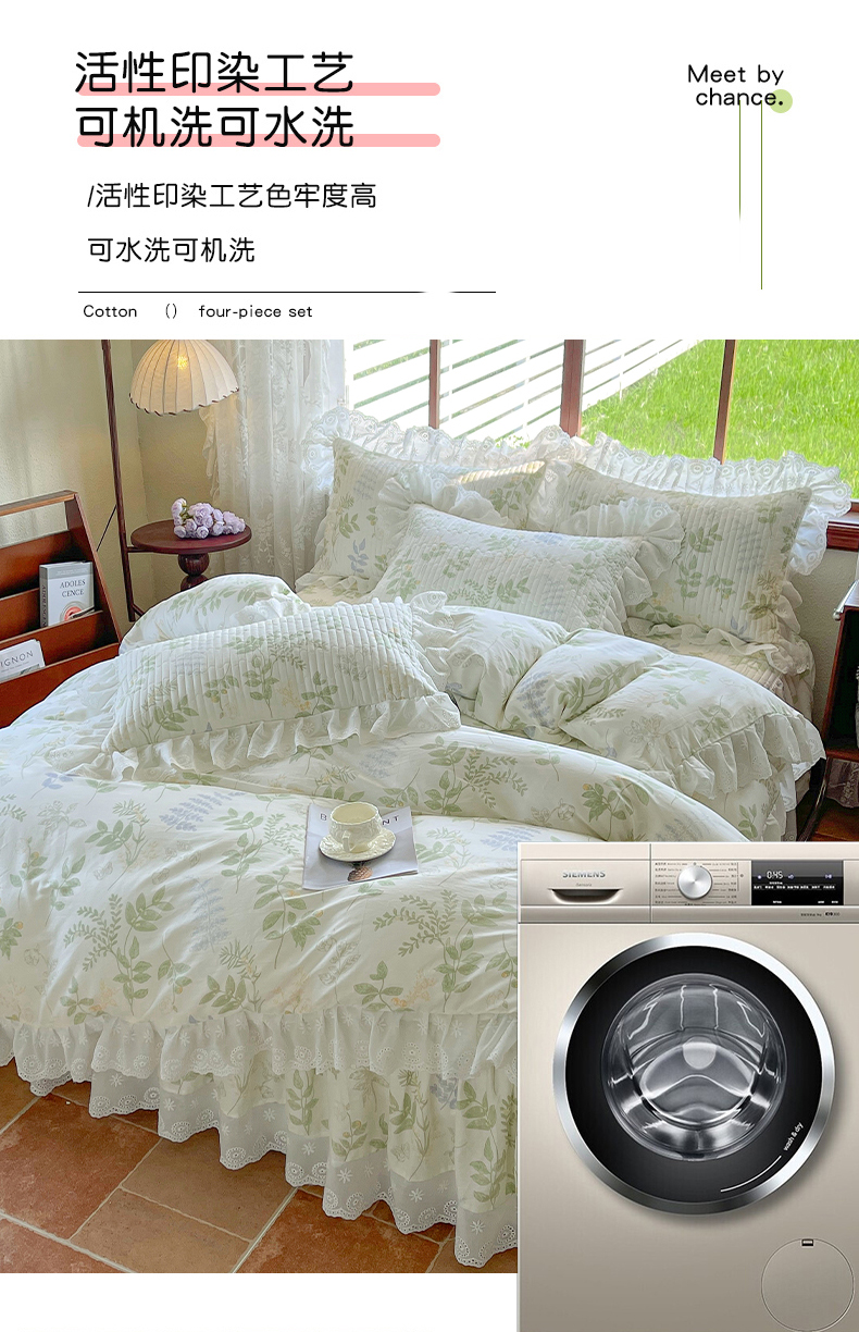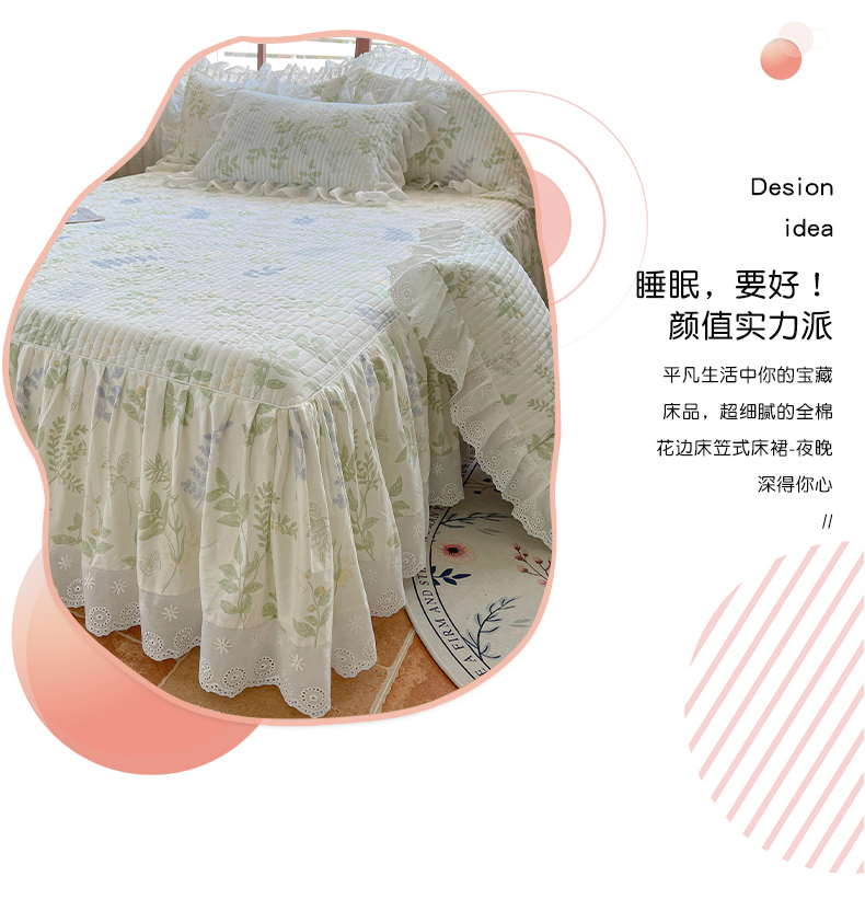 当前位置: 91家纺网 > 商品网购 > 床品套件 > 四件套 > 全棉普通四件套 > 罗艺轩 2025新款全棉印花床笠式花边床裙四件套 沁语花叶