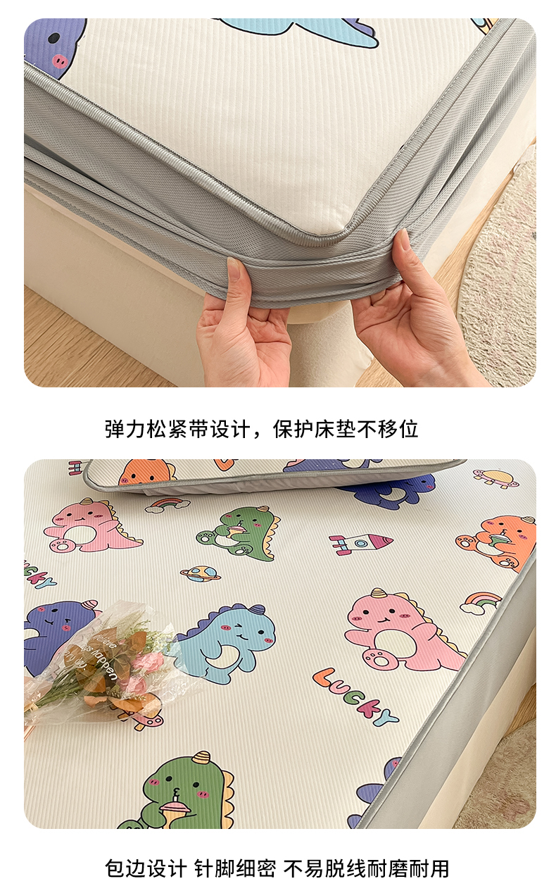 商品名称:星座家纺 2025新款斜纹提花凉感丝凉席床笠款三件套 床笠-七彩龙
